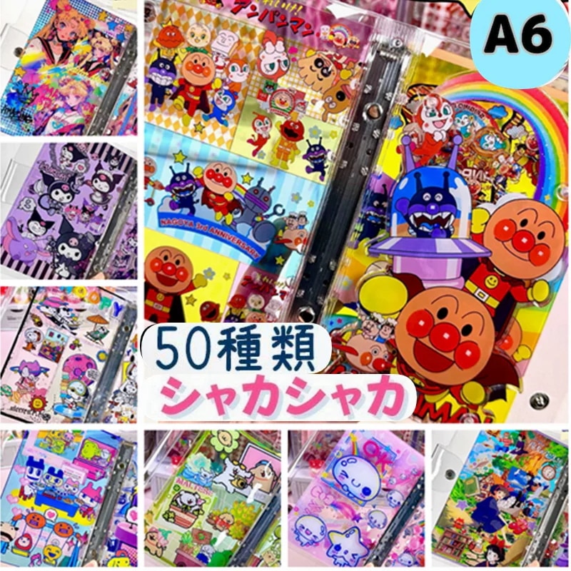 シャカシャカノートシール帳 A6サンリオキティたまごっちズートピアパンどろぼうバターベア美少女戦士セーラームーンアンパンマンパワーパフガールズしずくちゃんスティッチスヌーピー手帳