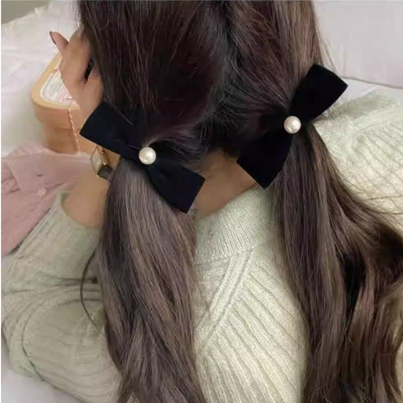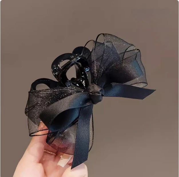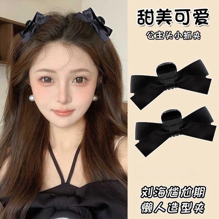 黒いリボン結びクリップアップスタイル用後頭部用ヘアピンサメクリップ