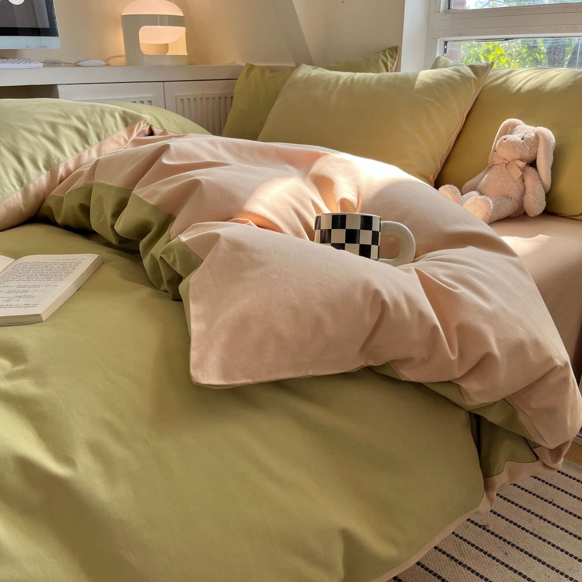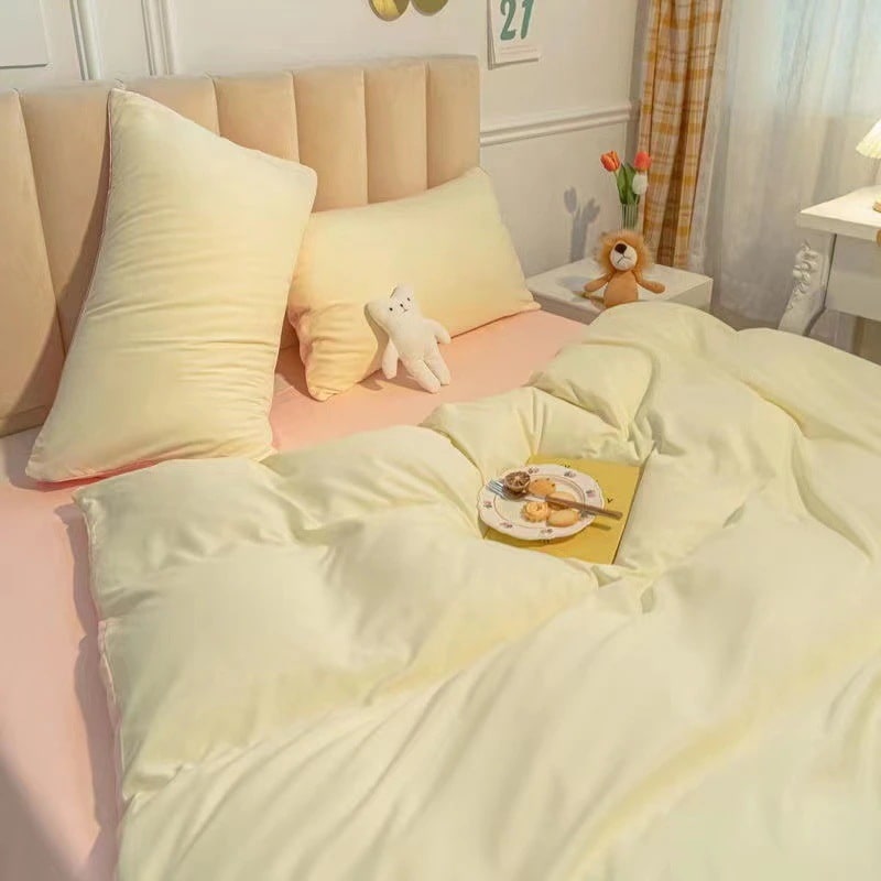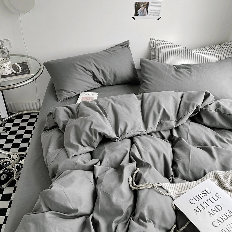 水洗いコットン 単色4点セット 寝具 日本風 シンプル 起毛シーツ付き布団カバー 寮用3点セット