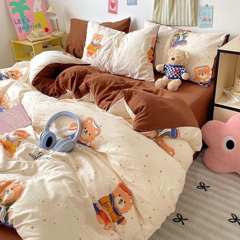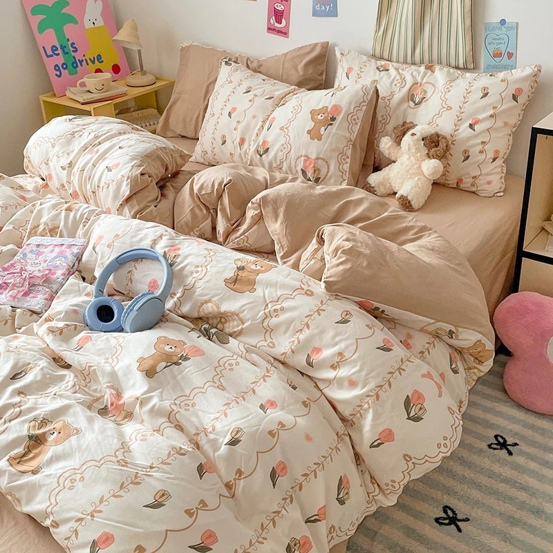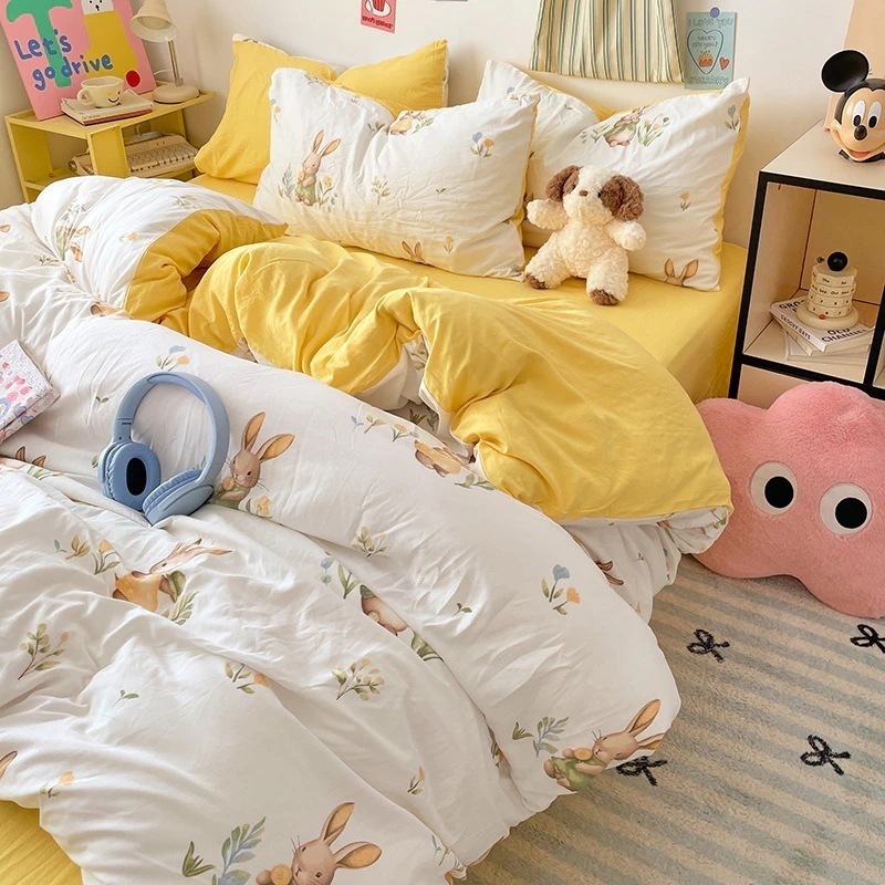 秋冬用ベッドカバー4点セット 2025年新作布団カバー シーツ 寮用シングル3点セット 肌触り良い雲のような綿素材