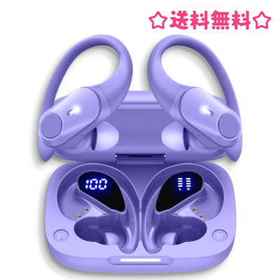 GOLREX ワイヤレスイヤホン Bluetooth 耳掛け式 最大40時間再生 防水 スポーツ 通勤 WEB会議 パープル