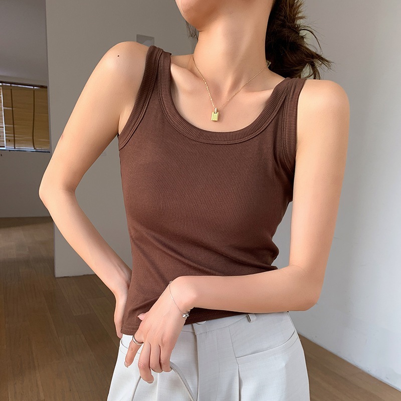 パッド入りタンクトップ女性用インナー一体型アウターとしても着用可能 万能トップス ブラジャー不要デザイン シンプルスタイルストラップタンクトップ
