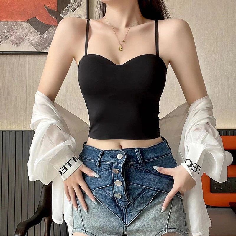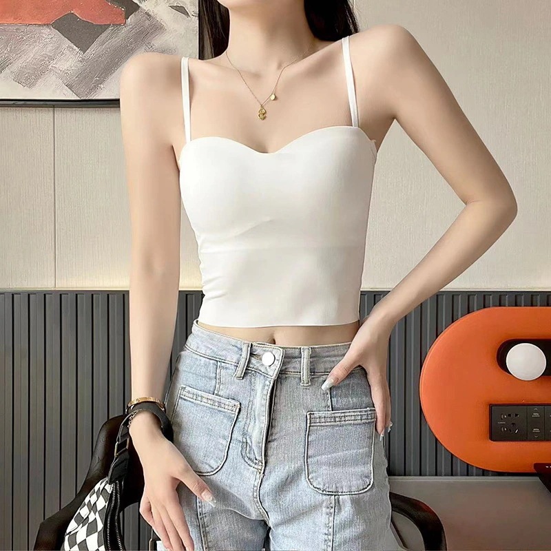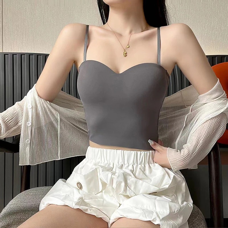 新作アイスシルクセクシーレースバックレスクロスストラップタンクトップ パッド一体型ワイヤーレスブラジャー女性用ストラップタンクトップ