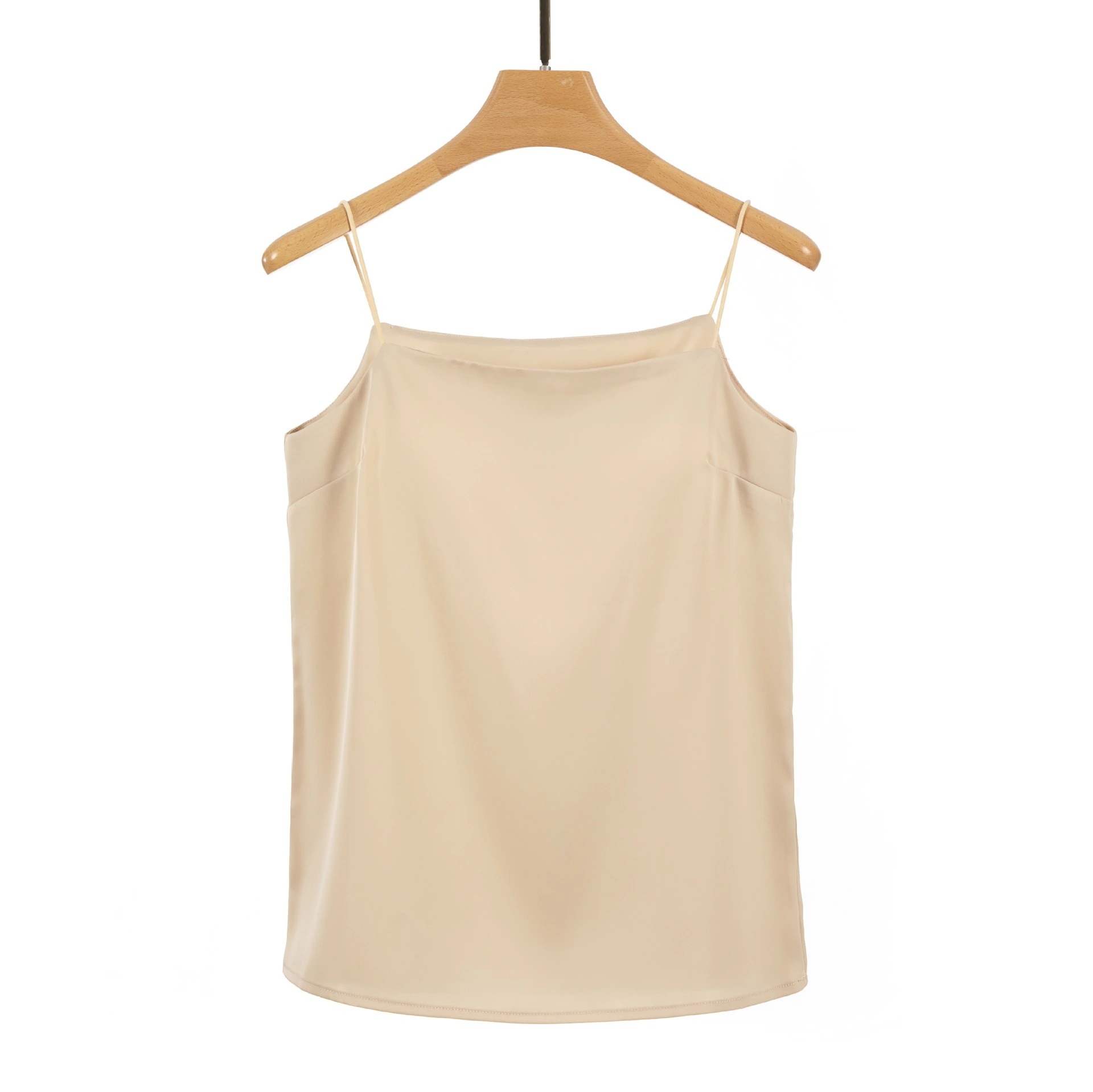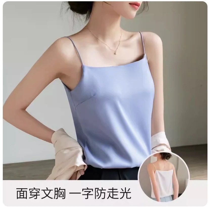 新作オフショルダーアイスシルクキャミソール パッド付き万能トップス サテン薄手インナー キャミソール