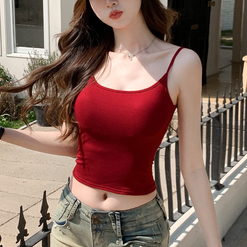 女性用キャミソール 細身効果 スリムシルエット セクシーなトップス 胸パッド付き インナーベスト 夏用セクシーTシャツ 合わせやすいストラップベスト