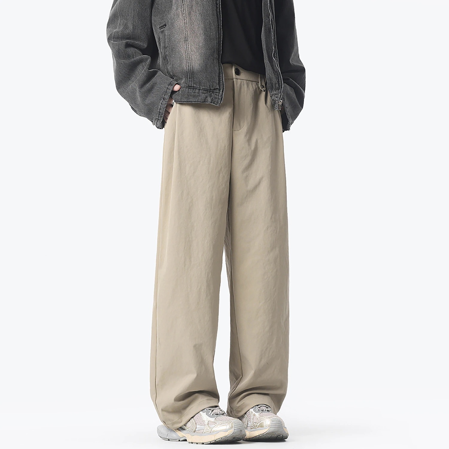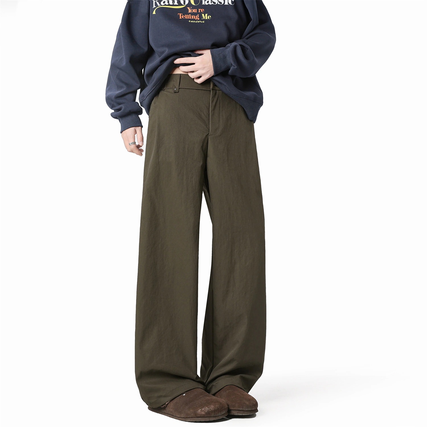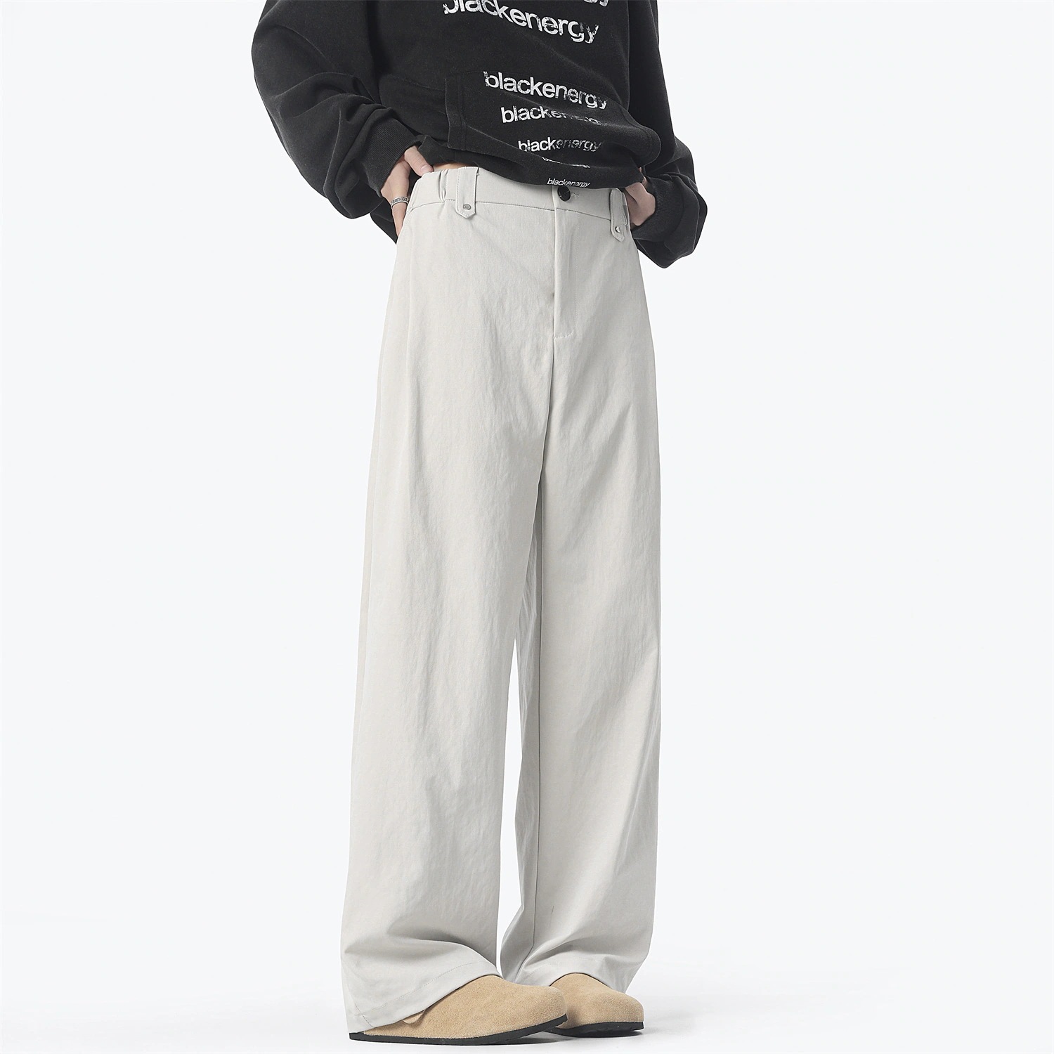 2026年新作 日本風ミニマルベーシックカジュアルパンツメンズゆったりワイドレッグルーズフィットストレートシルエットスーツパンツ
