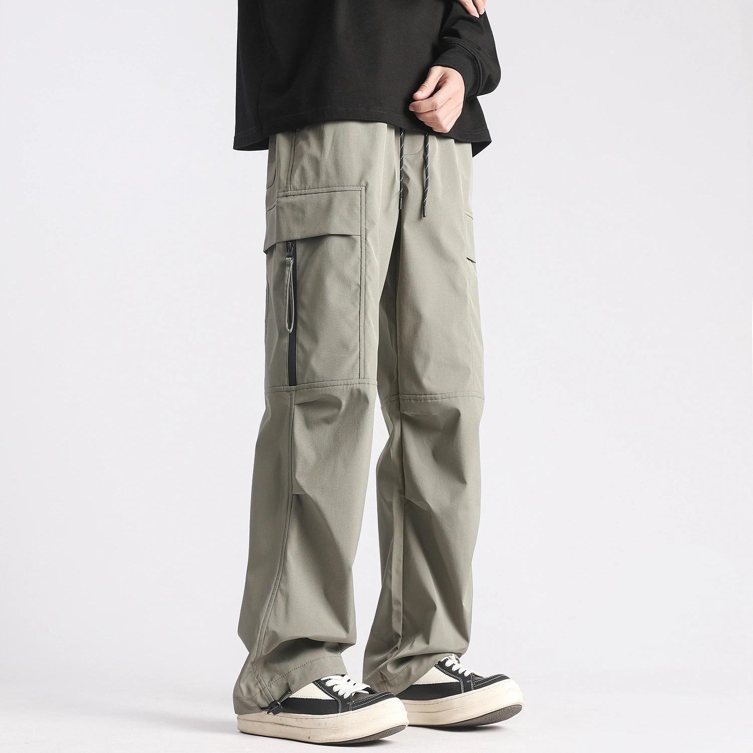 アメリカンスタイル機能性ストレートパンツ 男性用夏新作ポケット付きワークパンツ ゆったり着回し可能なカジュアルパンツ