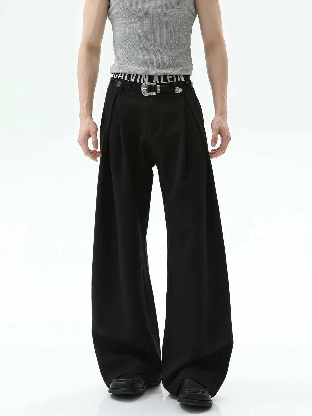 アメリカンスタイル立体裁断Aラインシルエットスラックスメンズ高級感ダブルプリーツストレートワイドパンツドレープ感のあるロングパンツ