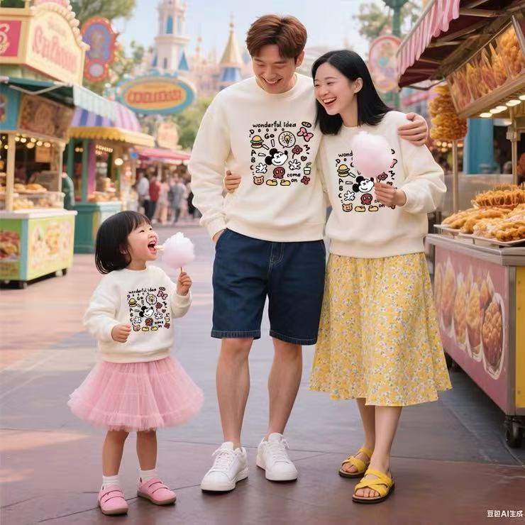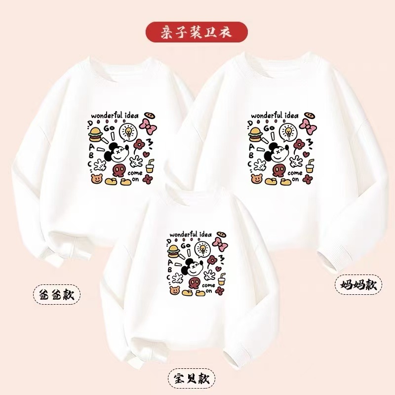 新品ディズニーミッキーマウスパーカー 長袖ゆったりトップスレディースメンズ薄手/裏起毛 トレーナー 綿 春 秋 冬 柔らかい 子供服 ペアルック 親子ペアルック