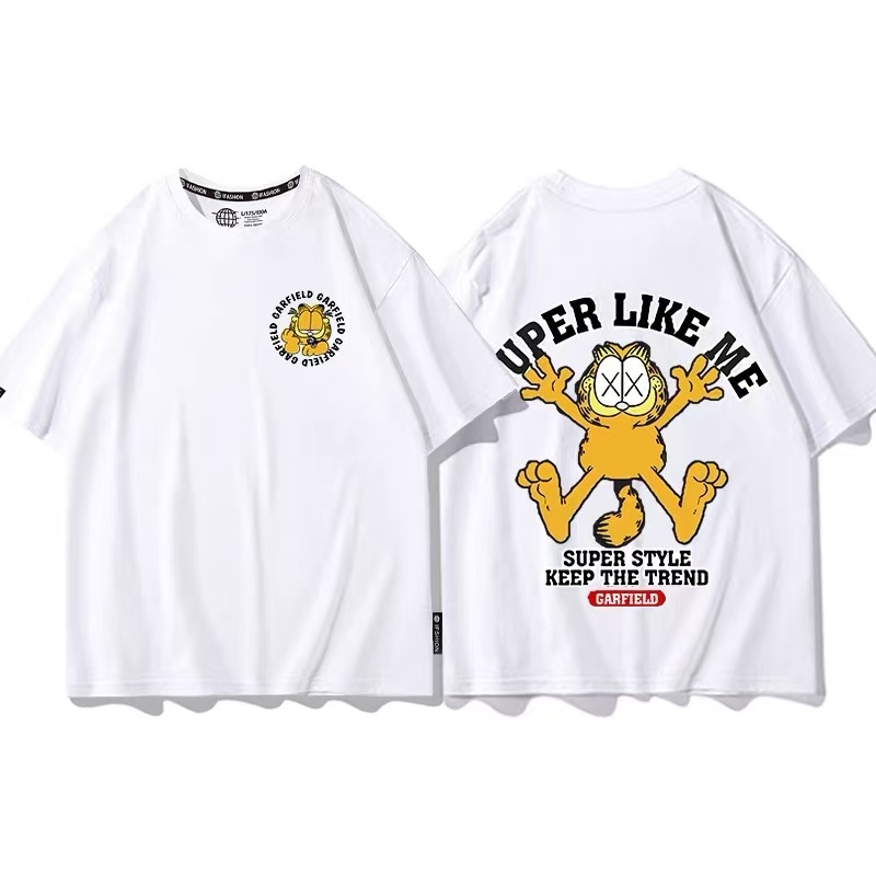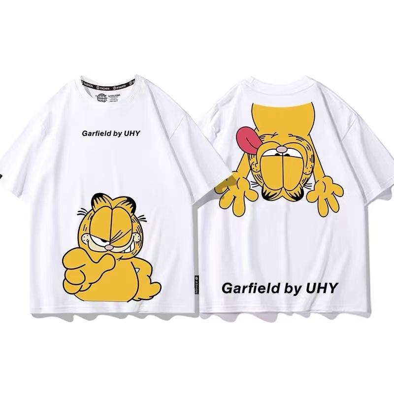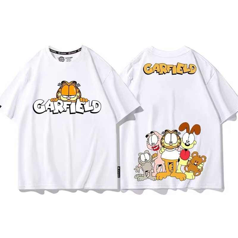 新品 ガーフィールド カップル 半袖 夏 綿 Tシャツ アニメゆったりトップス 男女兼用 レディース /メンズ 子供服 男の子 女の子柔らかい 恋人ペアルック 親子ペアルック