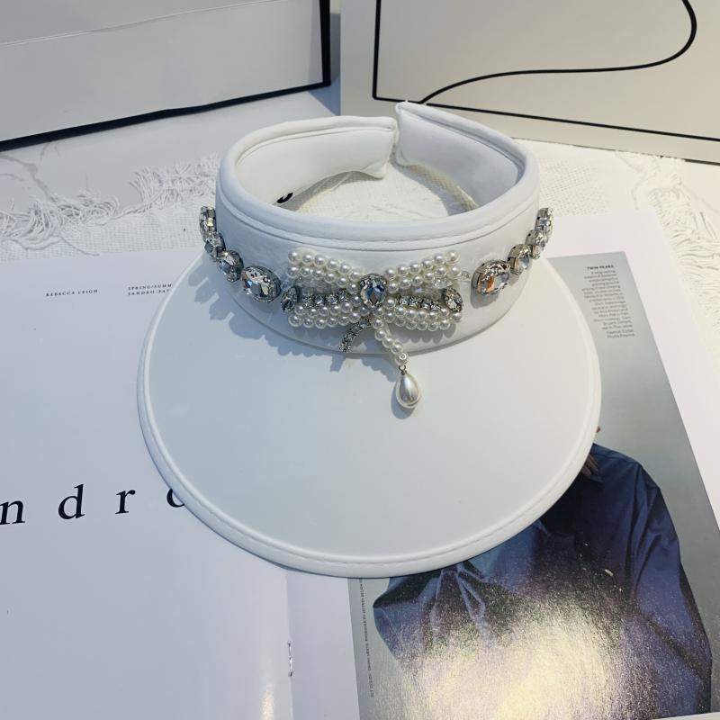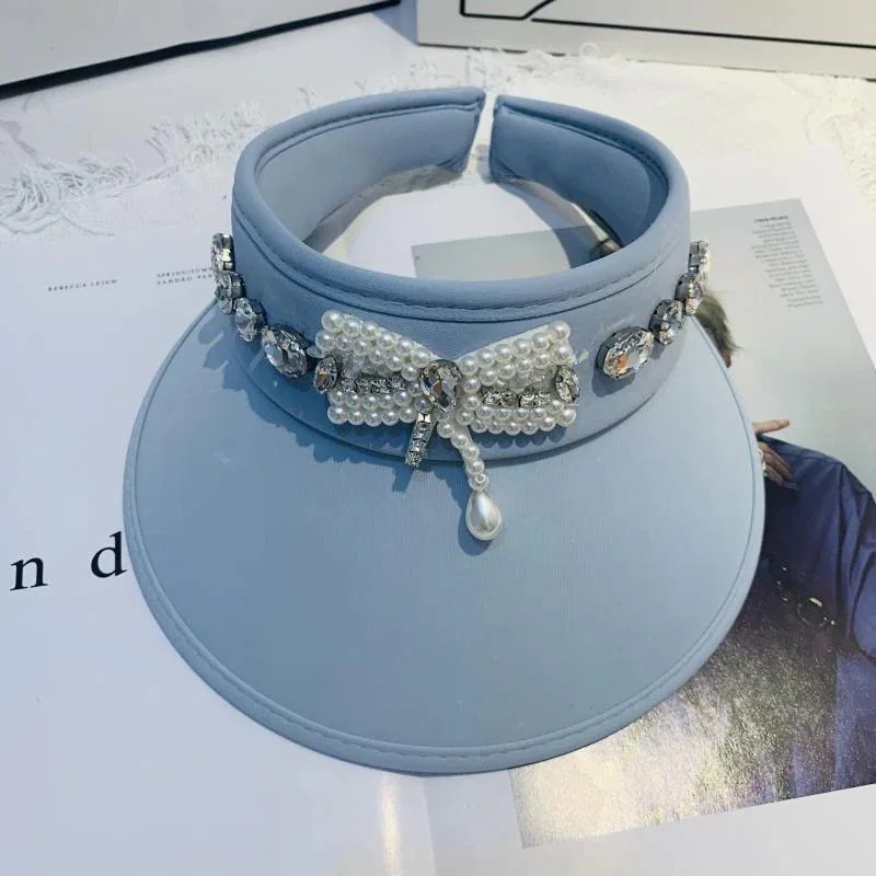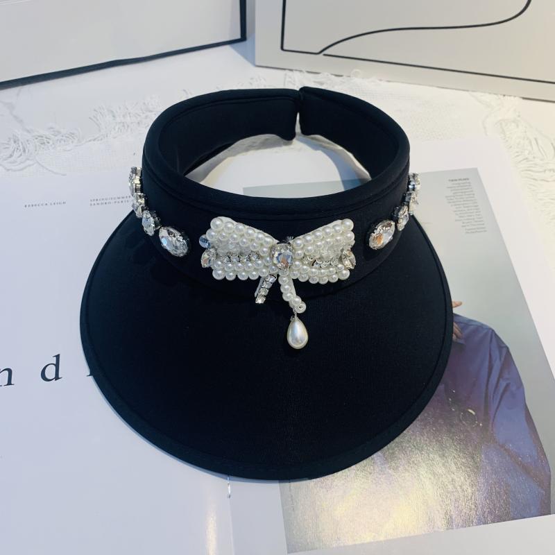 【3日出荷】uv 帽子 キャップ 真珠のリボン アイスシルク 日焼け防止帽子 春夏 くうてんじょう ヘアバンド ラインストーン 日よけ帽子 頭の周り