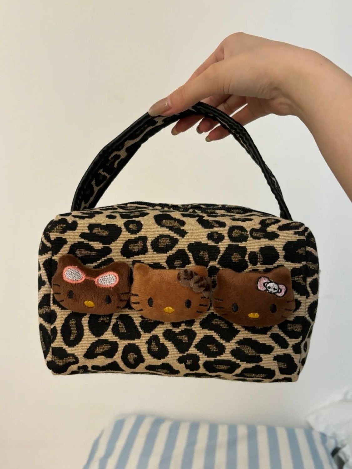 【2025年人気新作】レオパード柄 ブラックキティ コスメポーチ ペンケース大容量 ハンドバッグ ポータブル 洗顔ポーチ 高級感 ユニークデザイン誕生日プレゼントに