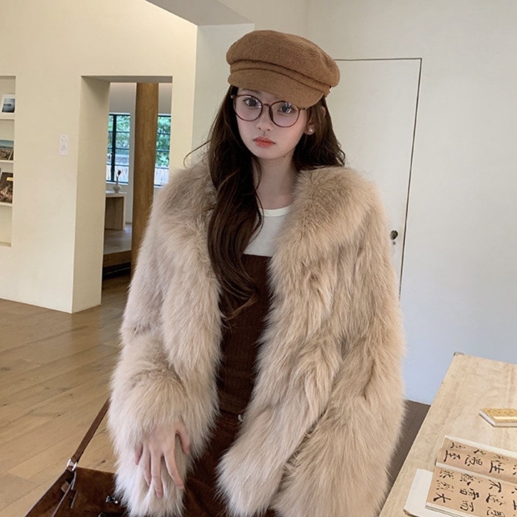 ファーコート秋冬 毛皮裏地付き厚手コート 綿入り