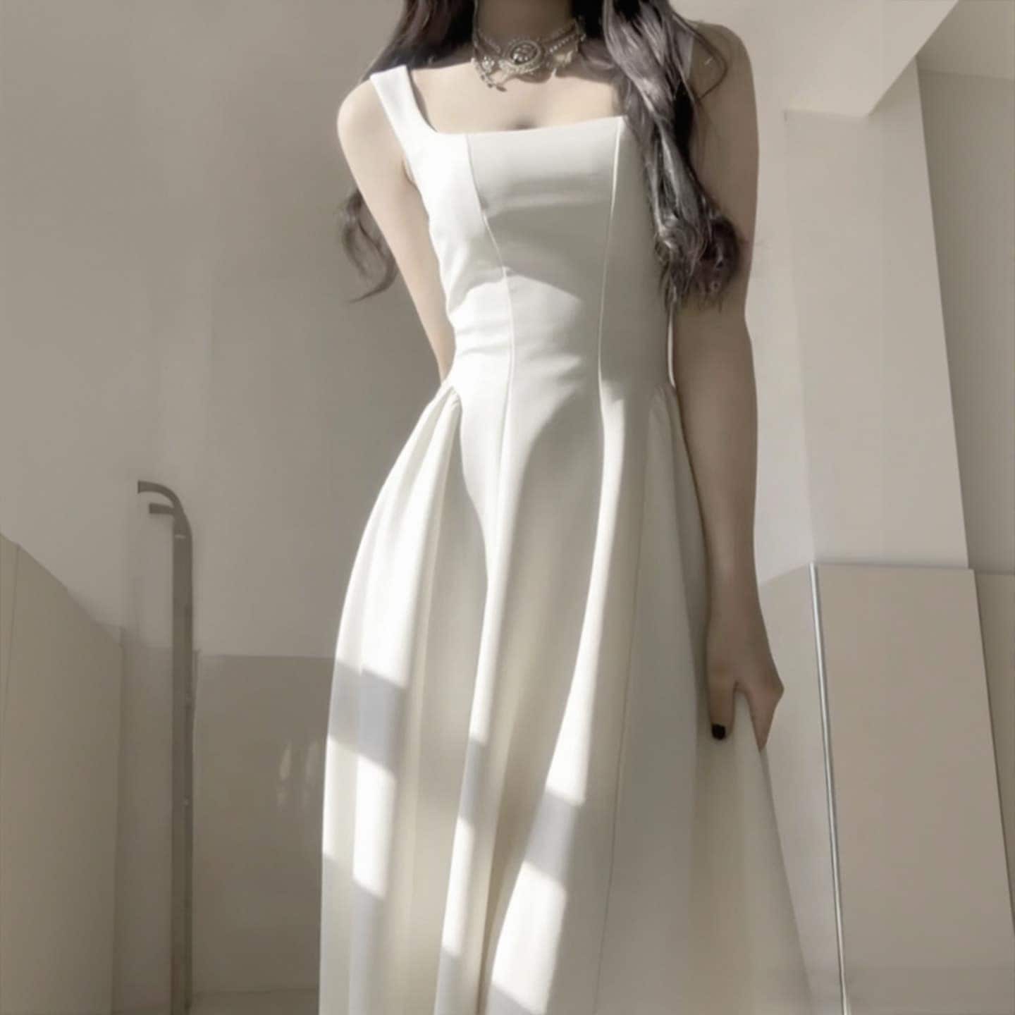 白色ロングドレス 女性向け 新作早春 シンプルで美しい軽奢華な高級感 バースデーチュニックワンピース