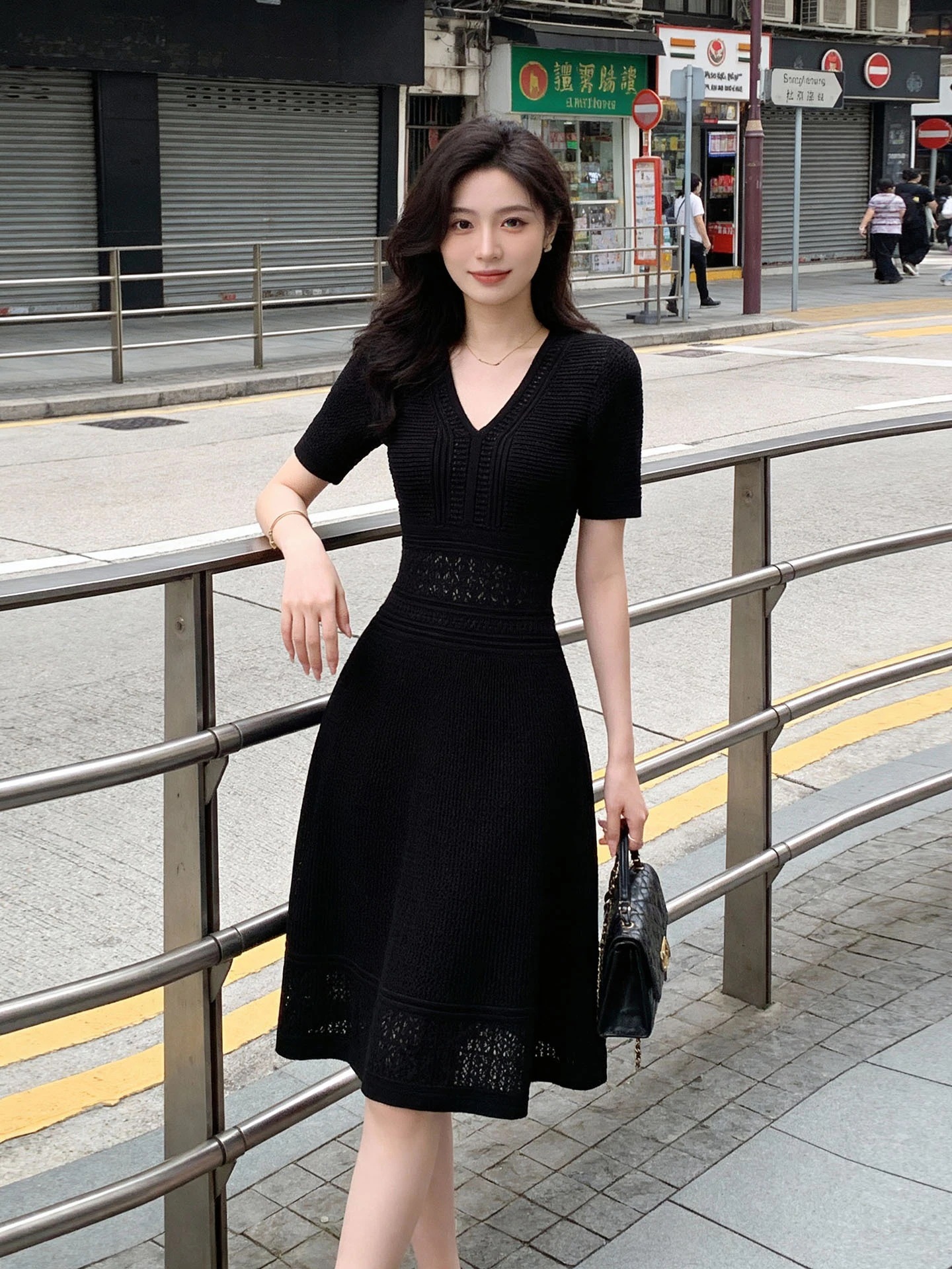 韓国Vネックアイシングニットドレス レディース 春夏新作 高級感ウェストマーク 気品あるショートドレス