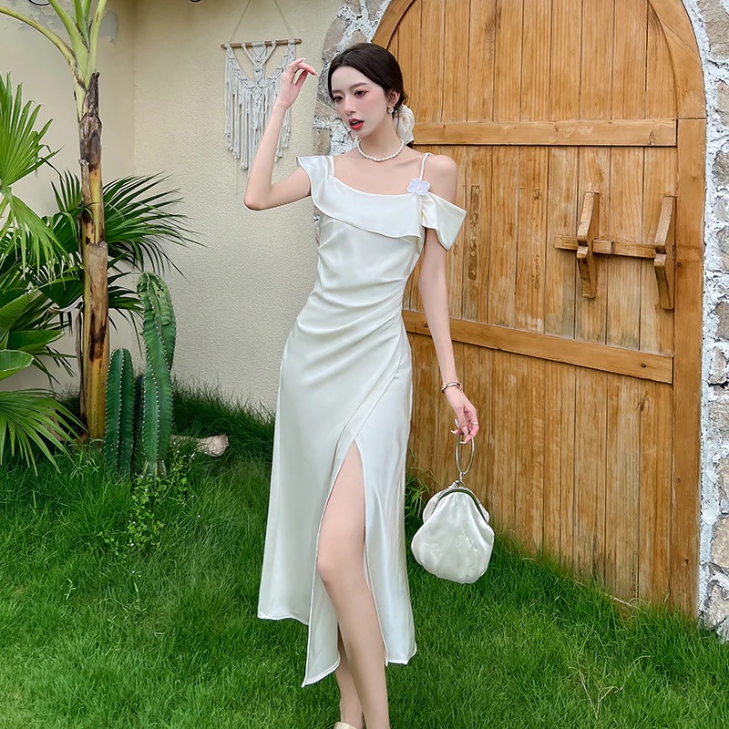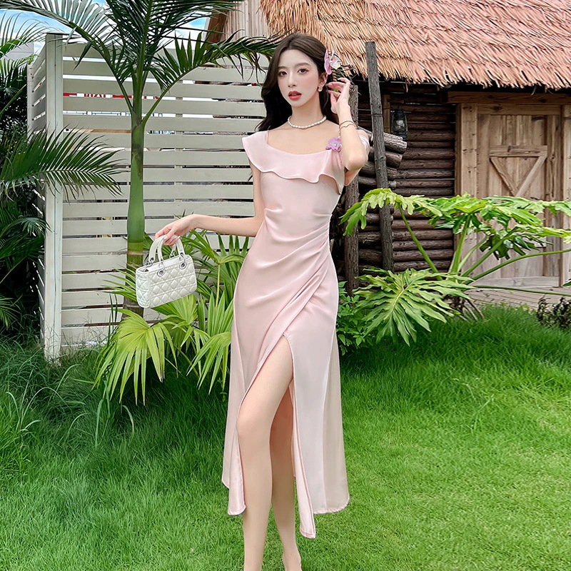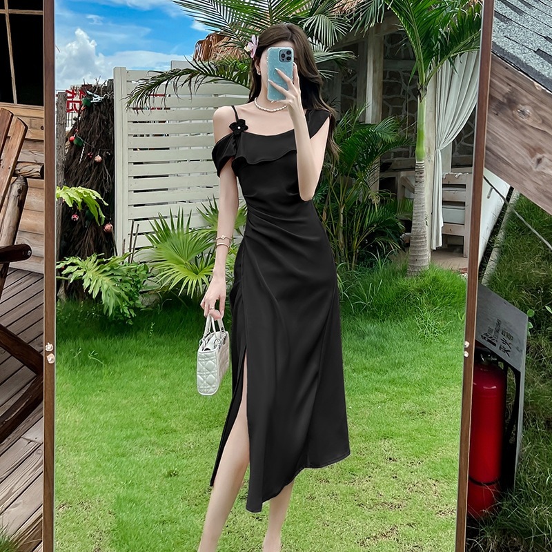 フランス風ブラトップドレス 新作 高級感のある軽奢華デザイン すらりと見えるフィット感のあるレース付きローワンカーディガン