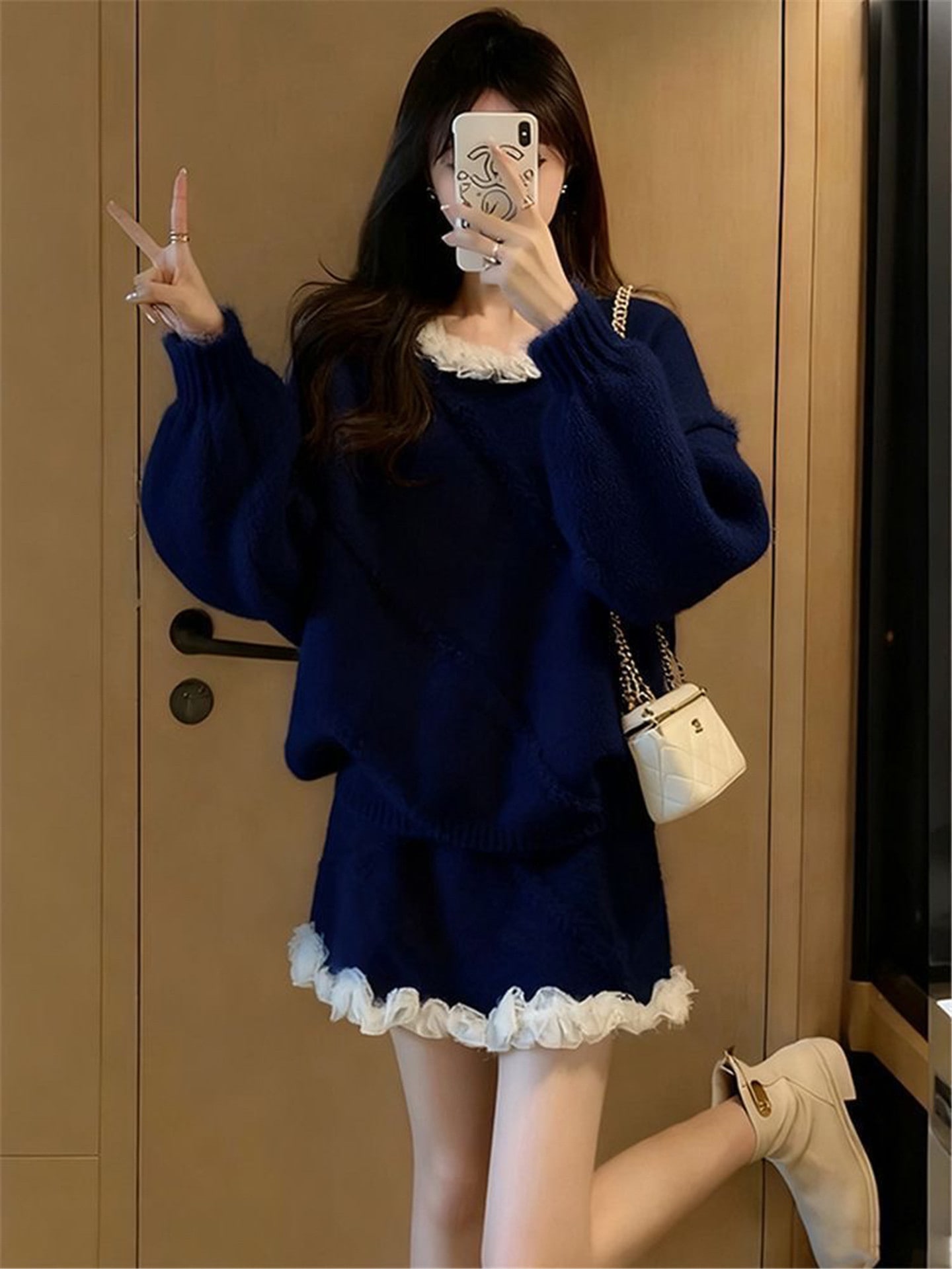 ニットドレス 女子 秋物 新作大人気冬物 一式 素敵なセーター シフォンスカート 2点セット