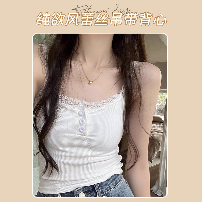 純粋で官能的なレースストラップ付きパッド入りタンクトップレディース夏用スリムフィットインナー/トップス