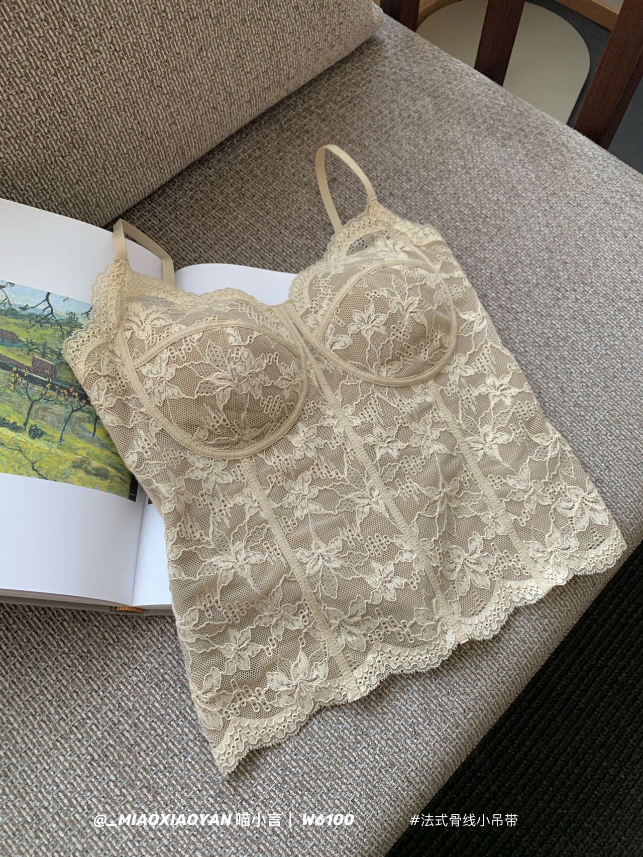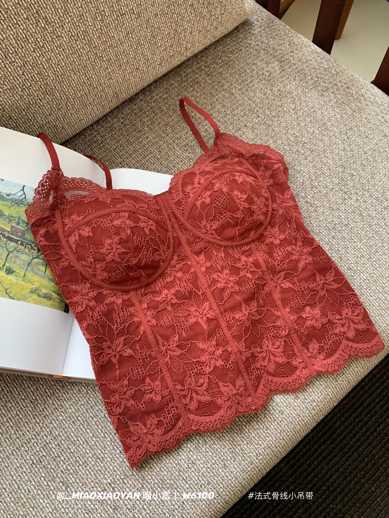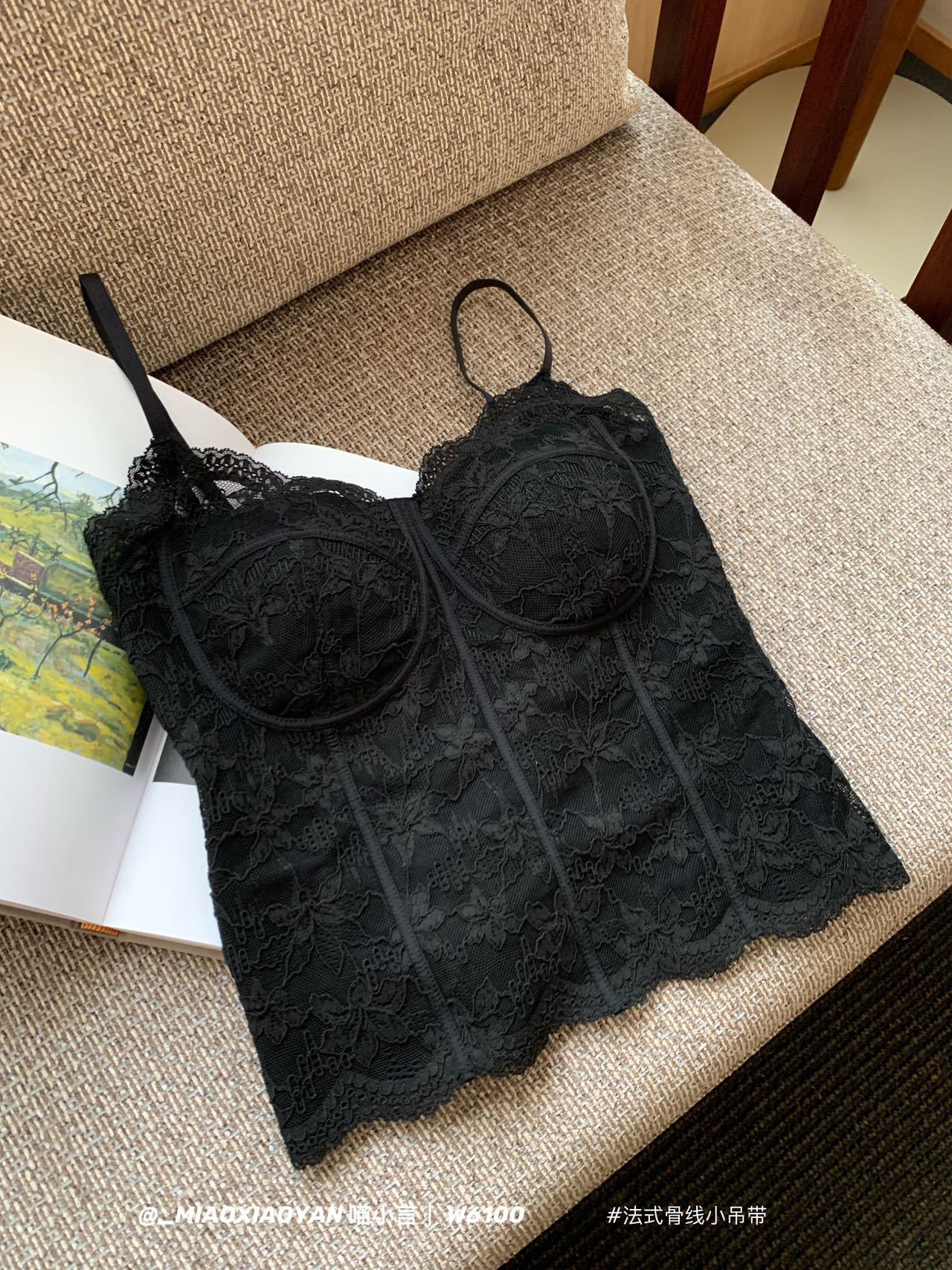 フレンチスタイル骨組みストラップ付きスリムシルエット 純粋でセクシーなレディース内蔵パッド付き 単品着用可能 ホットなレースタンクトップ