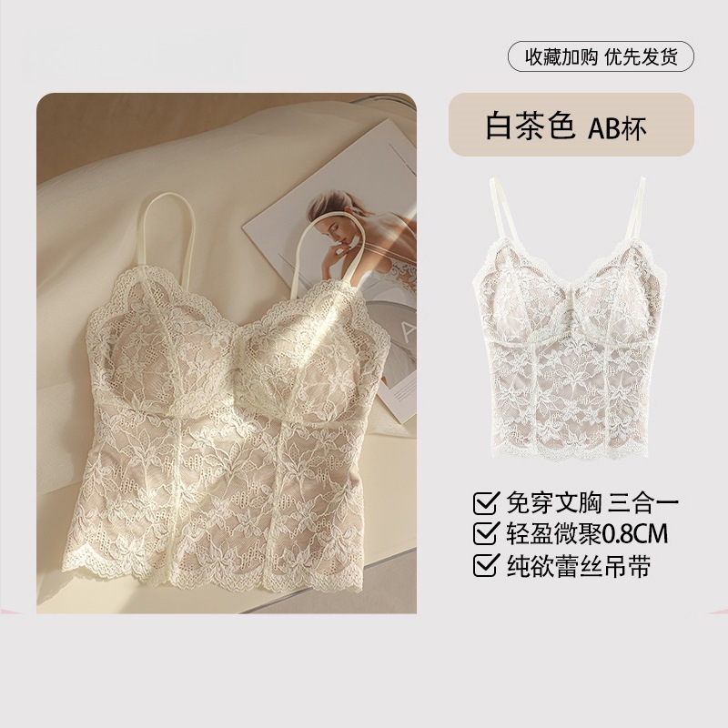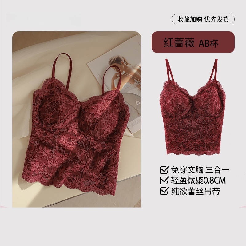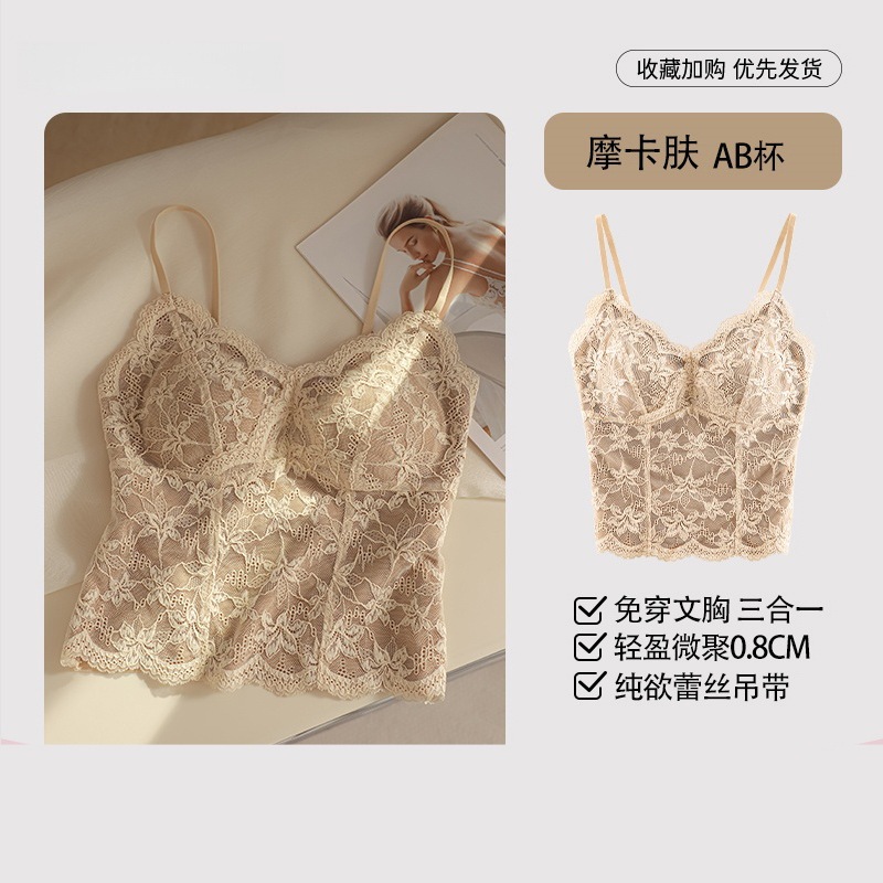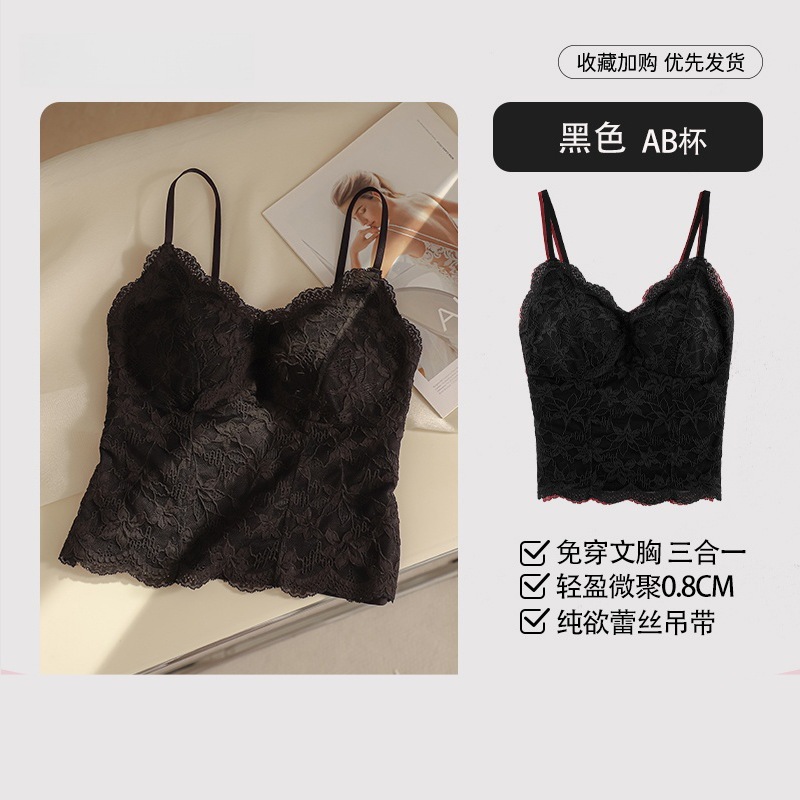 フレンチレース保温タンクトップレディースパッド付き秋冬インナーストラップトップスアウターとしても着用可