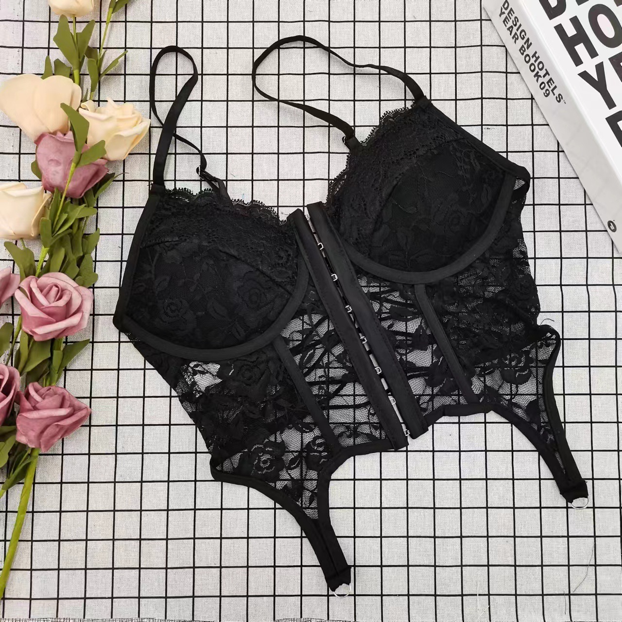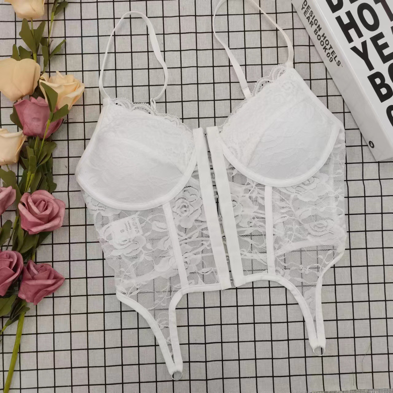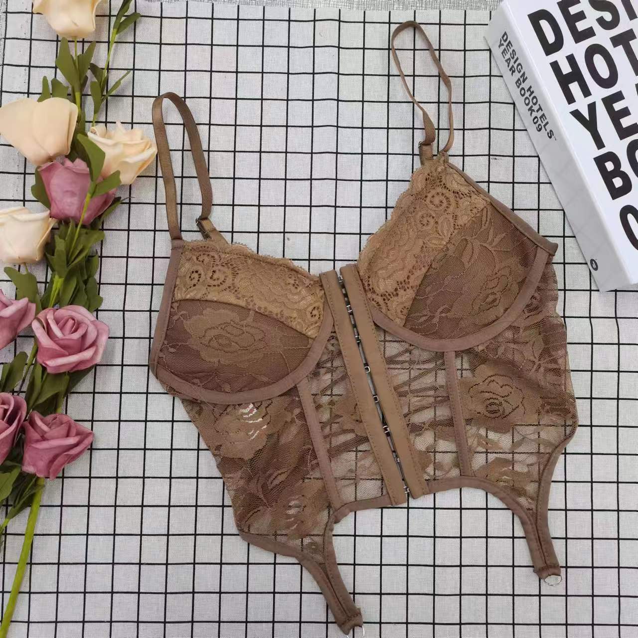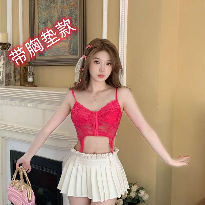 セクシーなフィッシュボーンレースキャミソールレディース夏用ピンクアウター着用セクシーな背中見せデザインインナーパッド付き
