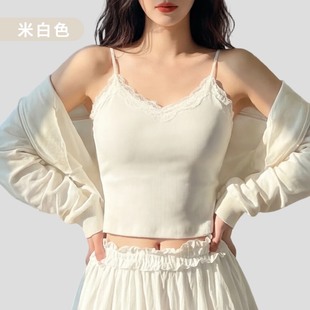 集束型調節可能カップ空け防止・締め付けなしレースストラップタンクトップ ベースレイヤー ホワイトタンクトップ