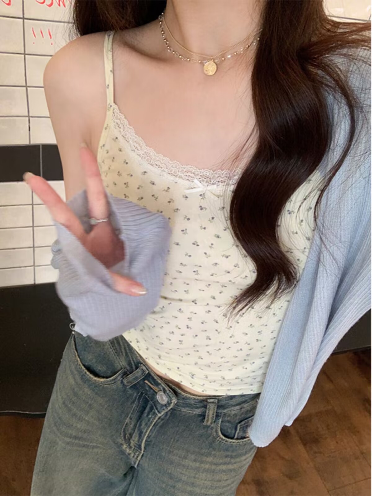甘く可憐な花柄ストラップタンクトップレディースインナー/アウター一体型パッド入りレーススリムトップス夏用薄手