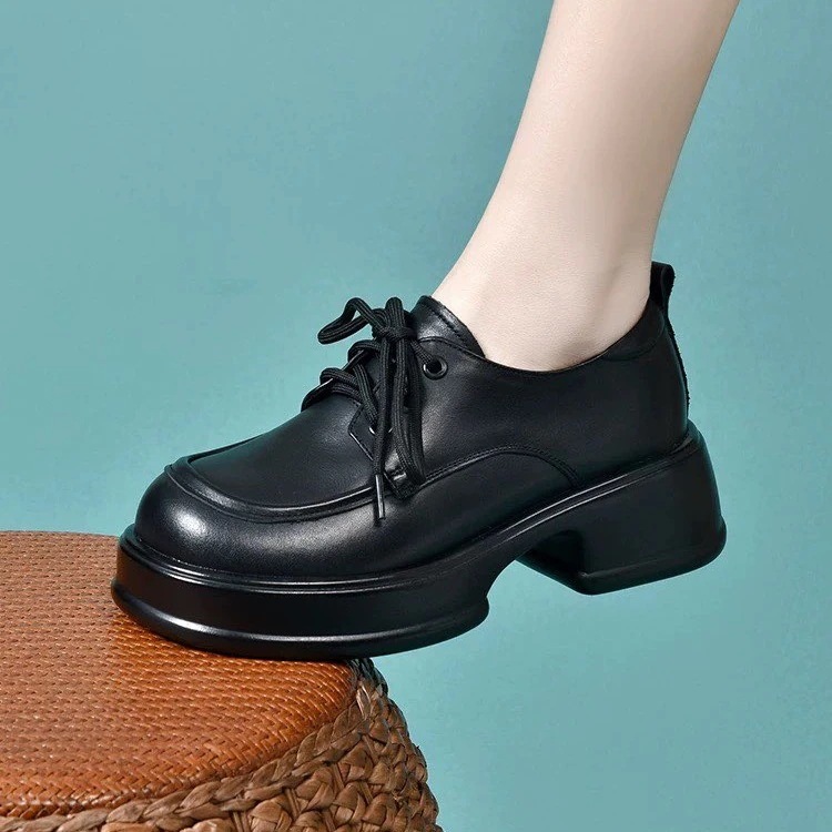 厚底サンダル ファッション楽福靴女性春の新作マドレーヌ厚底英倫風小革靴ソフトレザーカジュアル単靴