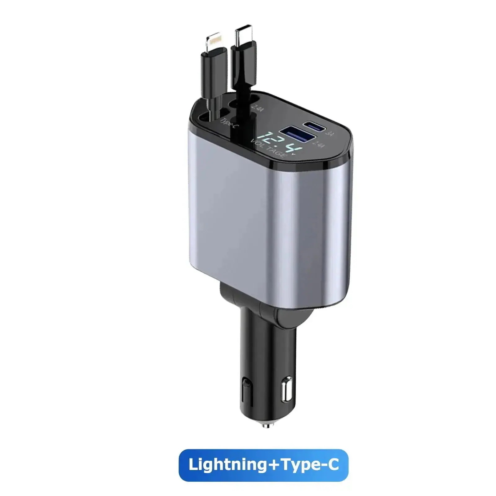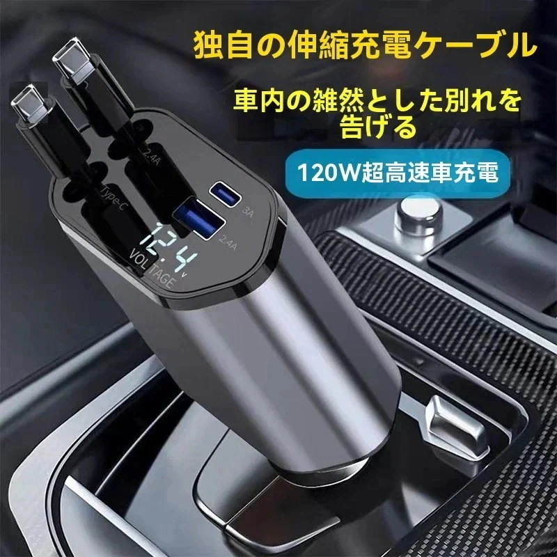 シガーソケット 車 充電器 急速充電対応 カーチャージャー 4ポート 車載充電器 type-c Lightning シガーチャージャー usb コンセント 巻き取り式 ケーブル付き