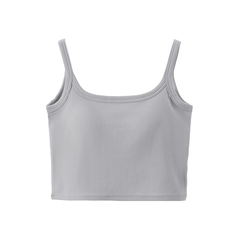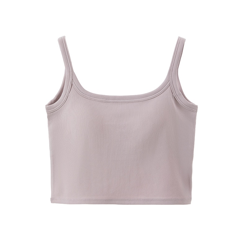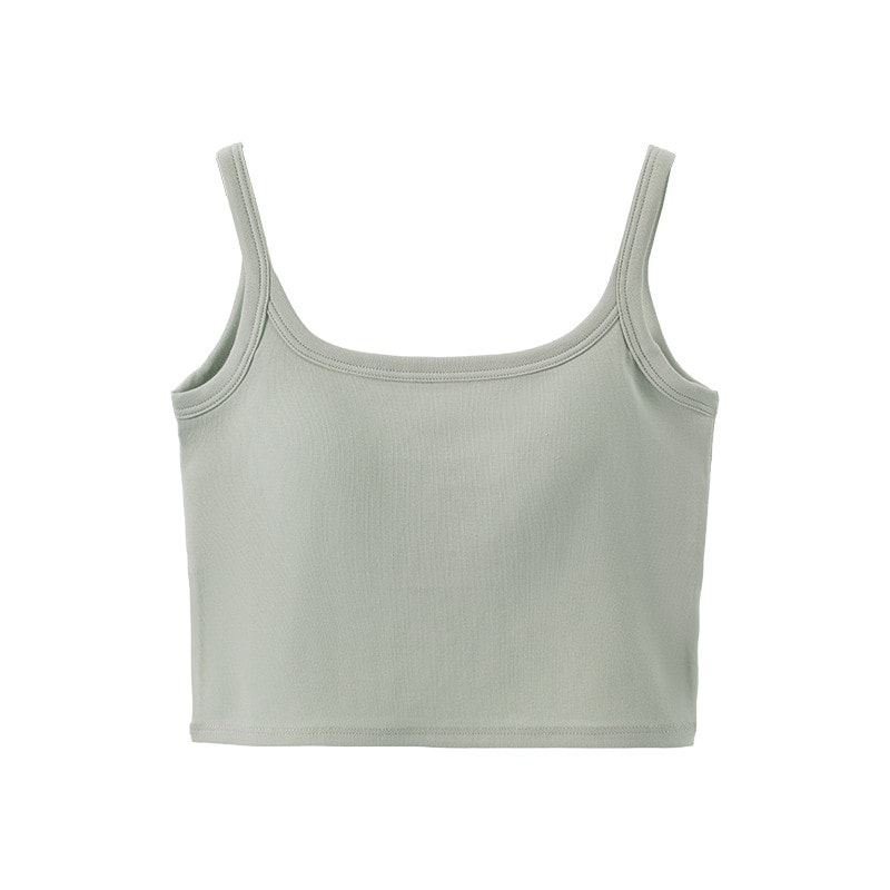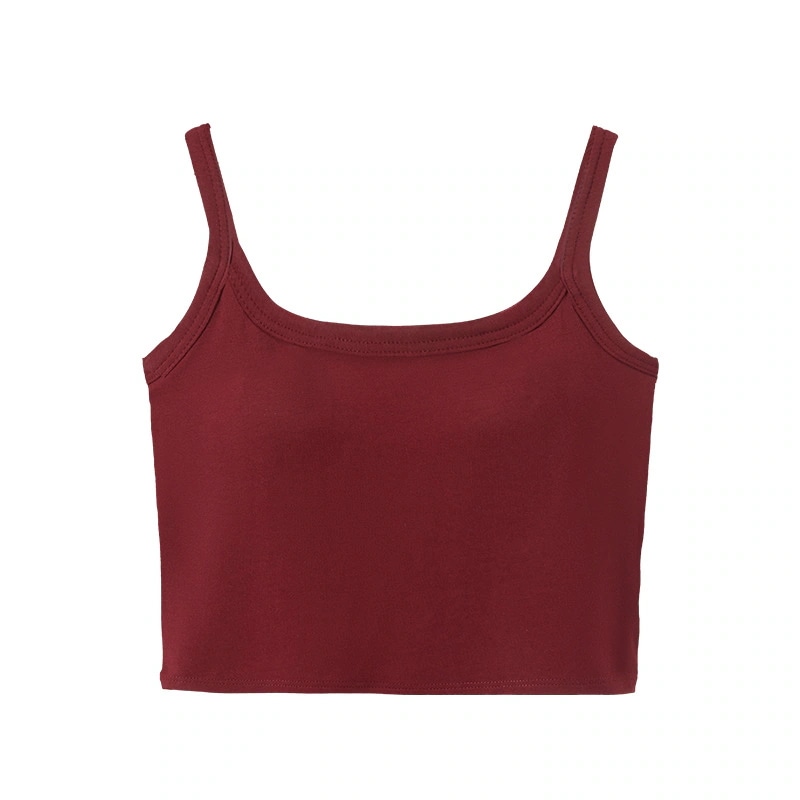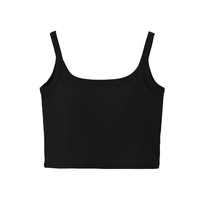 タンクトップ(夏用)外着用パッド付きノースリーブインナーブラ 一体型インナー へそ出しスクエアネック美背ストラップタンクトップ