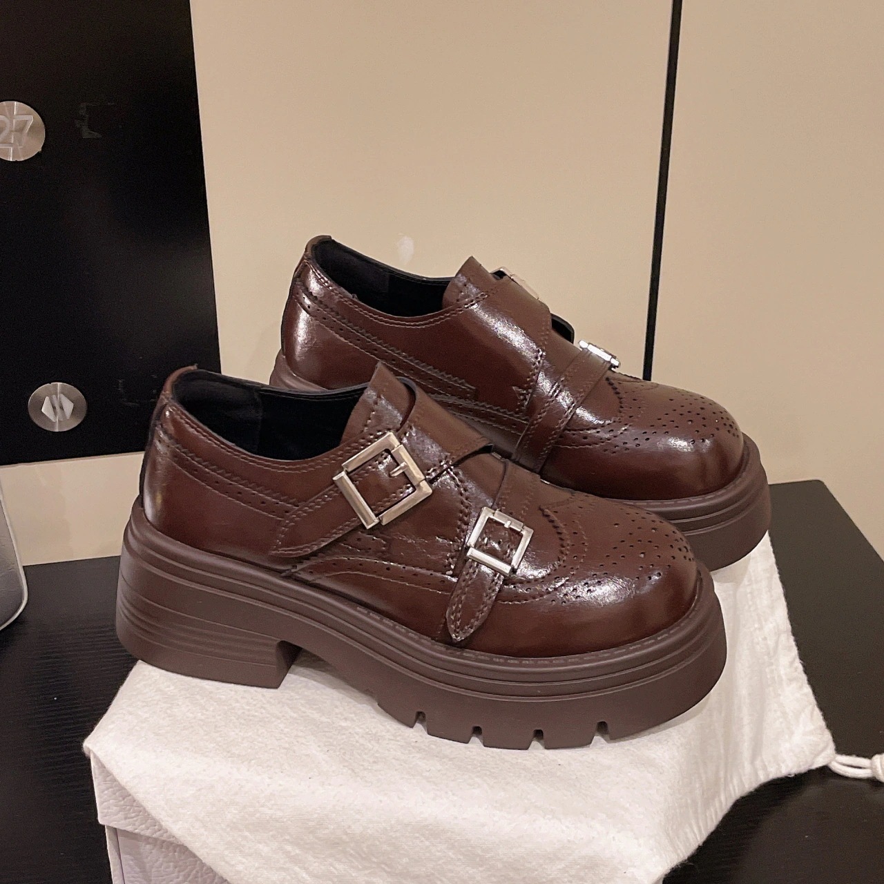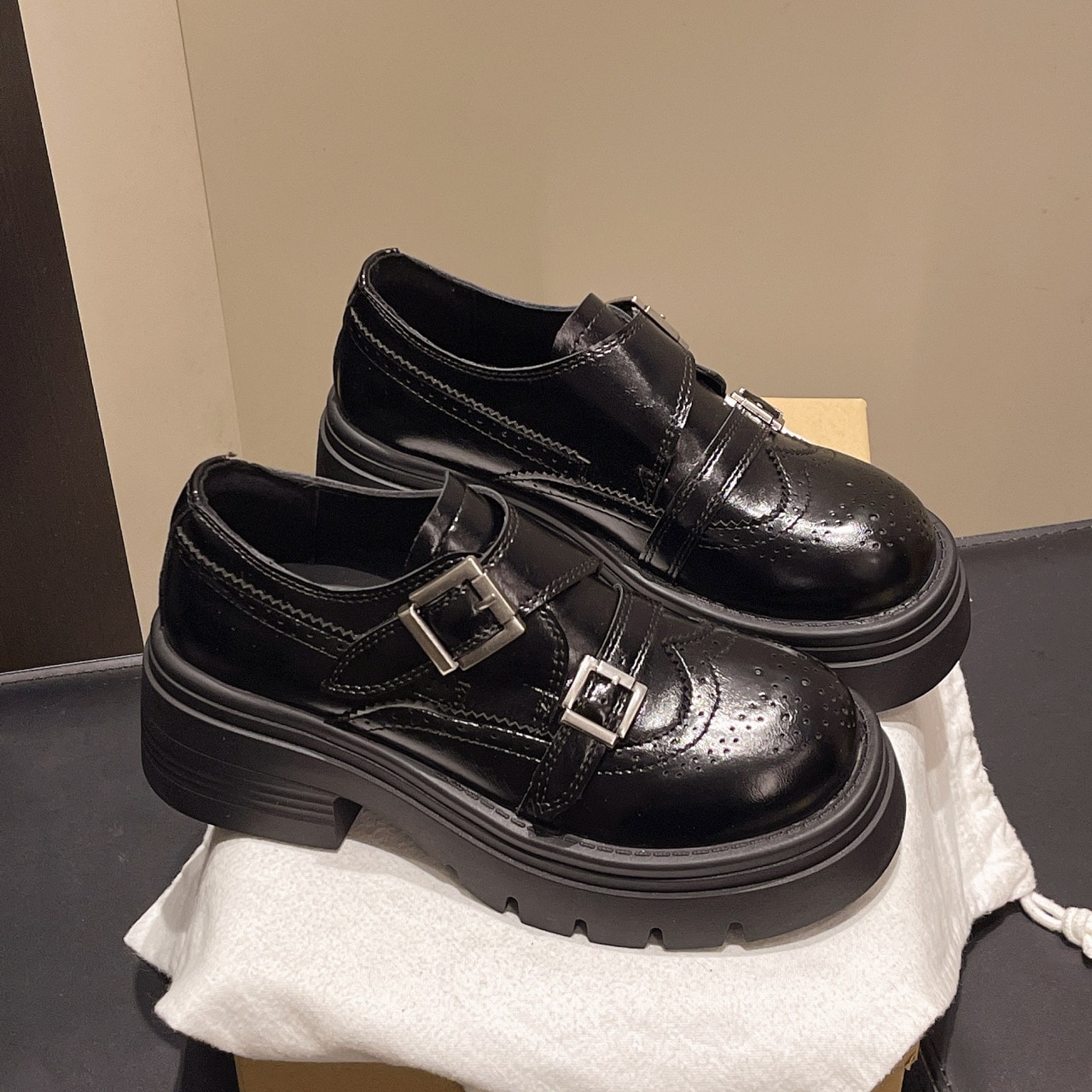 【送.料.無.料】金属バックル 早春 厚底 身長アップ ソール高さ 5cm レディースレザーパンプス ローファー スニーカー