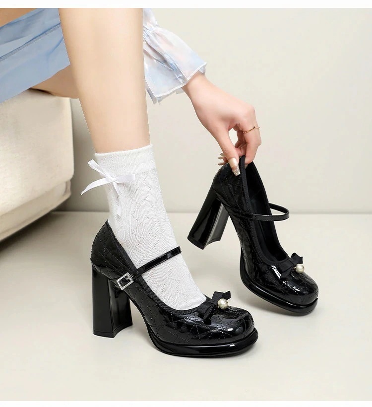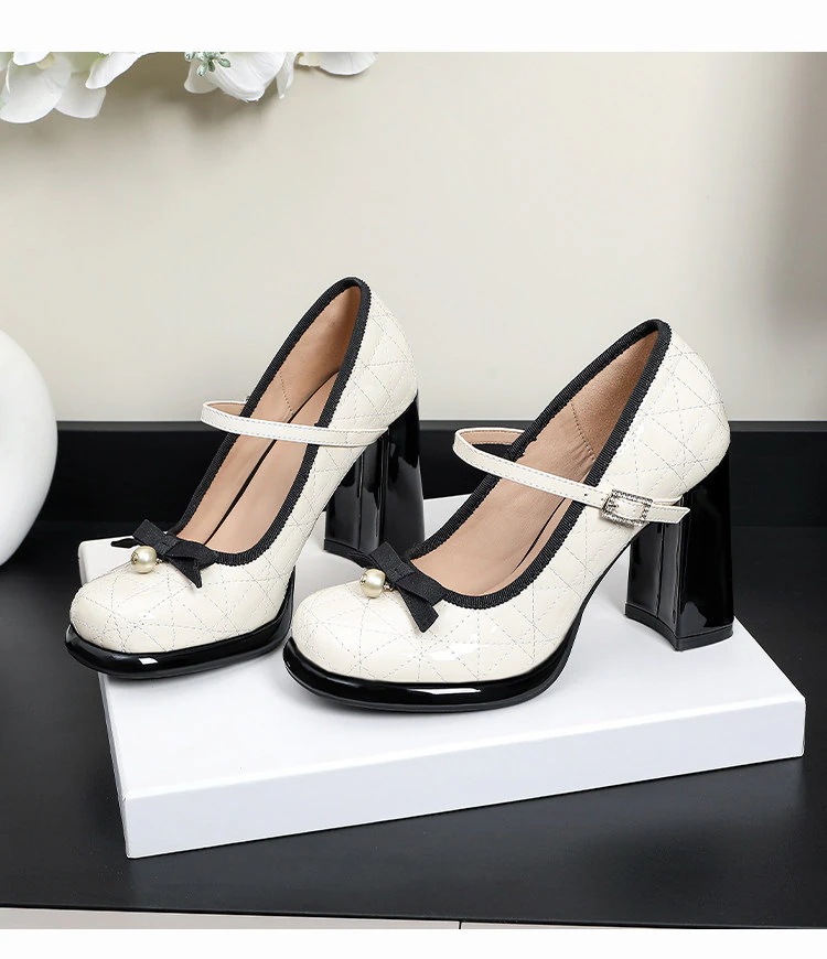 【送.料.無.料】太ヒールマリージャンヌハイヒール 春 ミドルヒール 浅口パンプス ローファー スニーカー