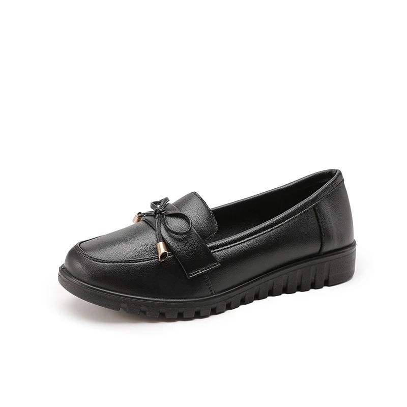 【送.料.無.料】ワークシューズ レディース フラット 滑り止め ママシューズ カジュアル 黒レザーシューズ ママ用 ローファー スニーカー