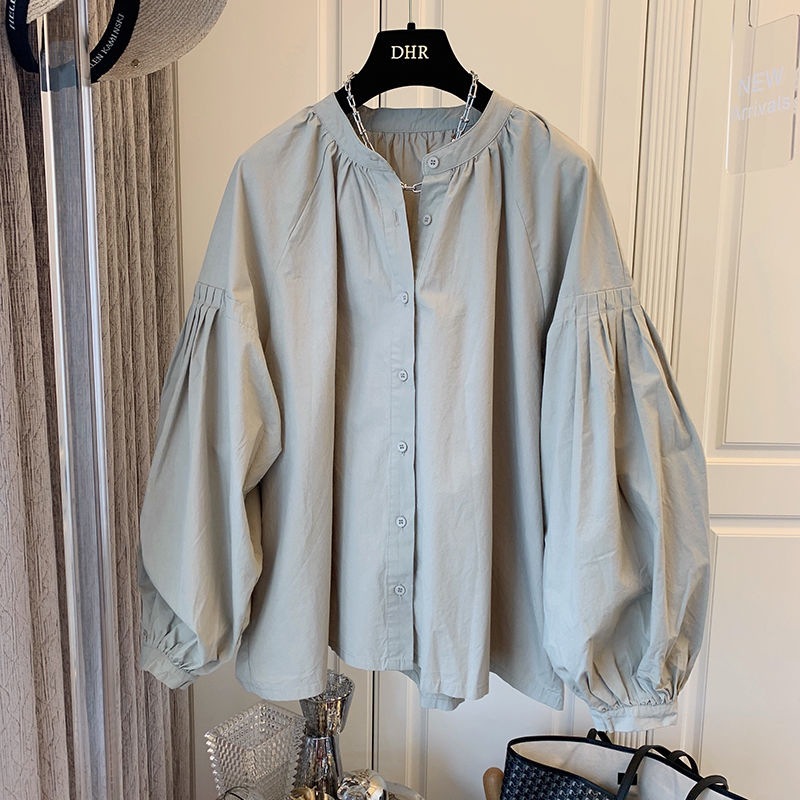 ブラウス シャツブラウス パフスリーブスタンドカラートップス 春服 長袖Tシャツレディース 3カラー