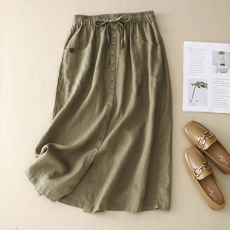 夏新作 スカート 細身効果 ナチュラル風 コットンリネン スカート ハーフ丈 マルチコーディネート スカート レディース