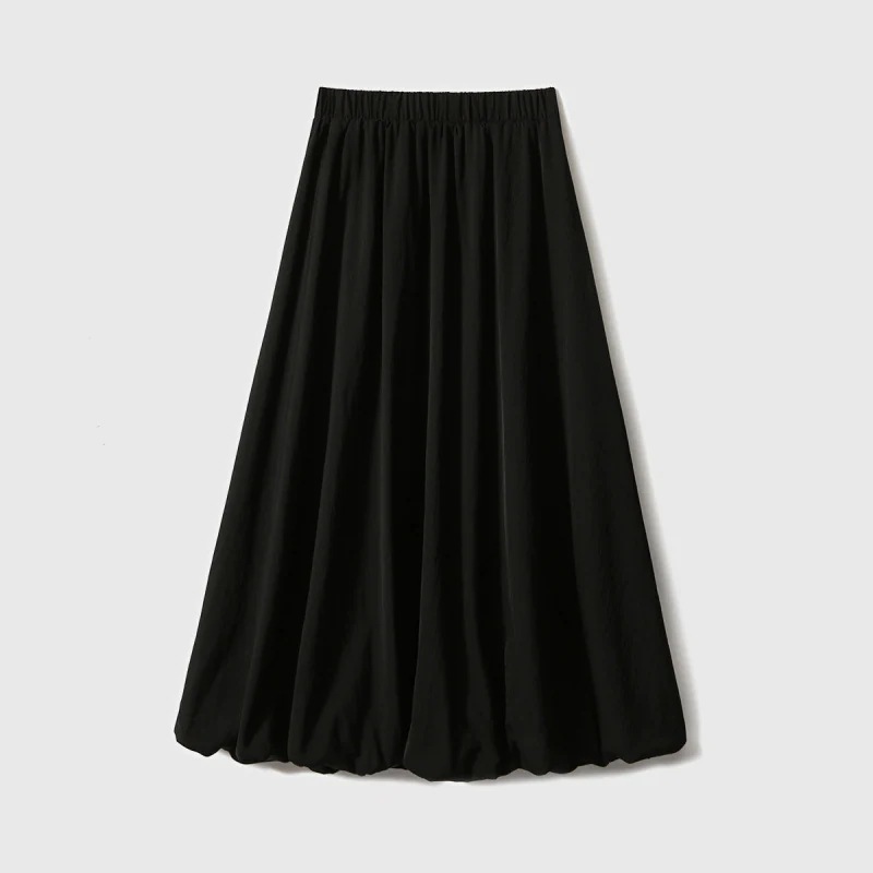 日韓春物新作 ゴムウエスト 体型カバー ランタン型 蕾デザイン ハーフスカート フレアスカート