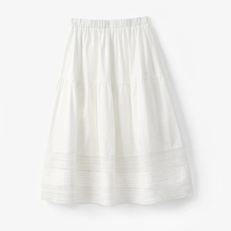 全綿フレンチホワイトスカート女性用2026年春夏新作デザインレース縁取りエレガントAラインスカート