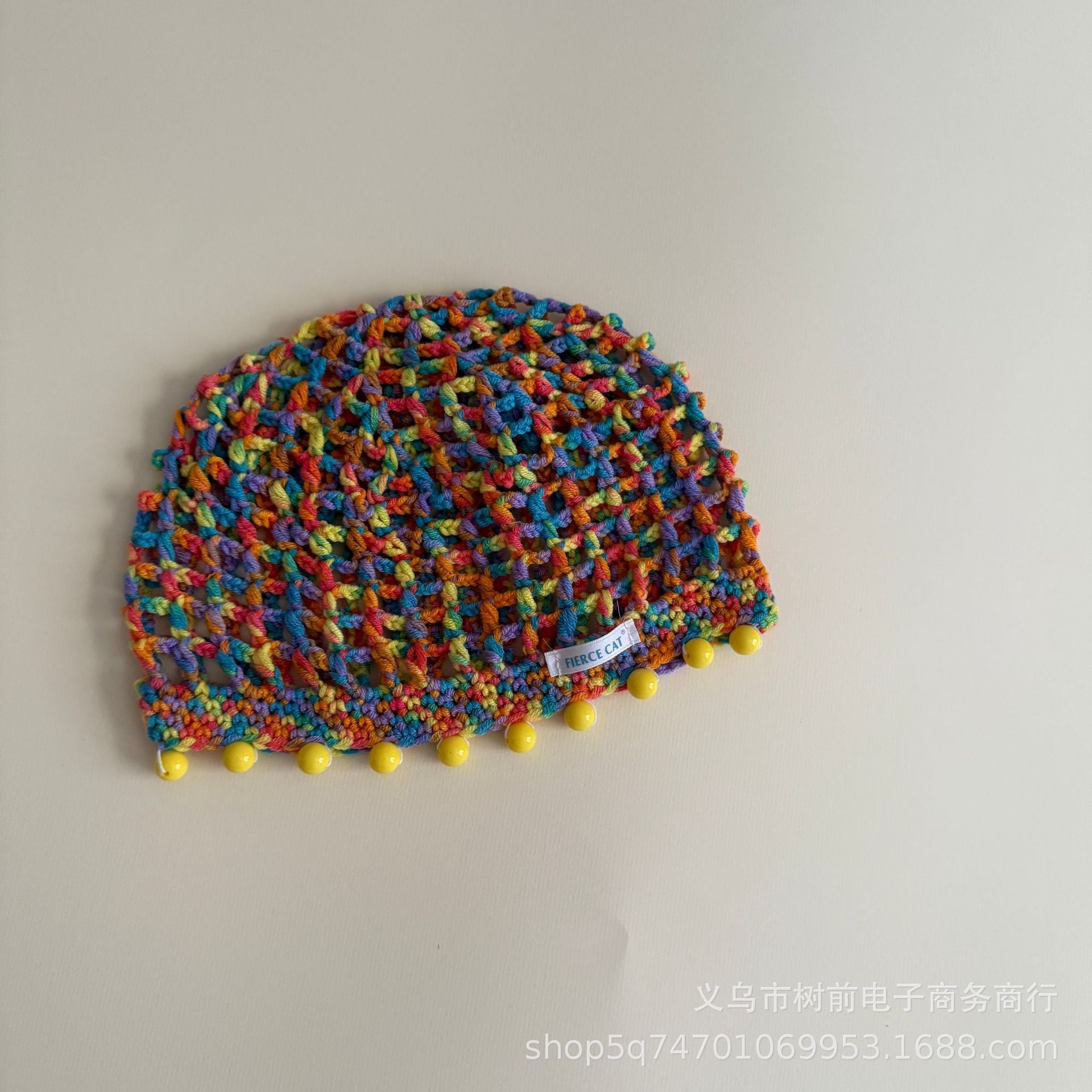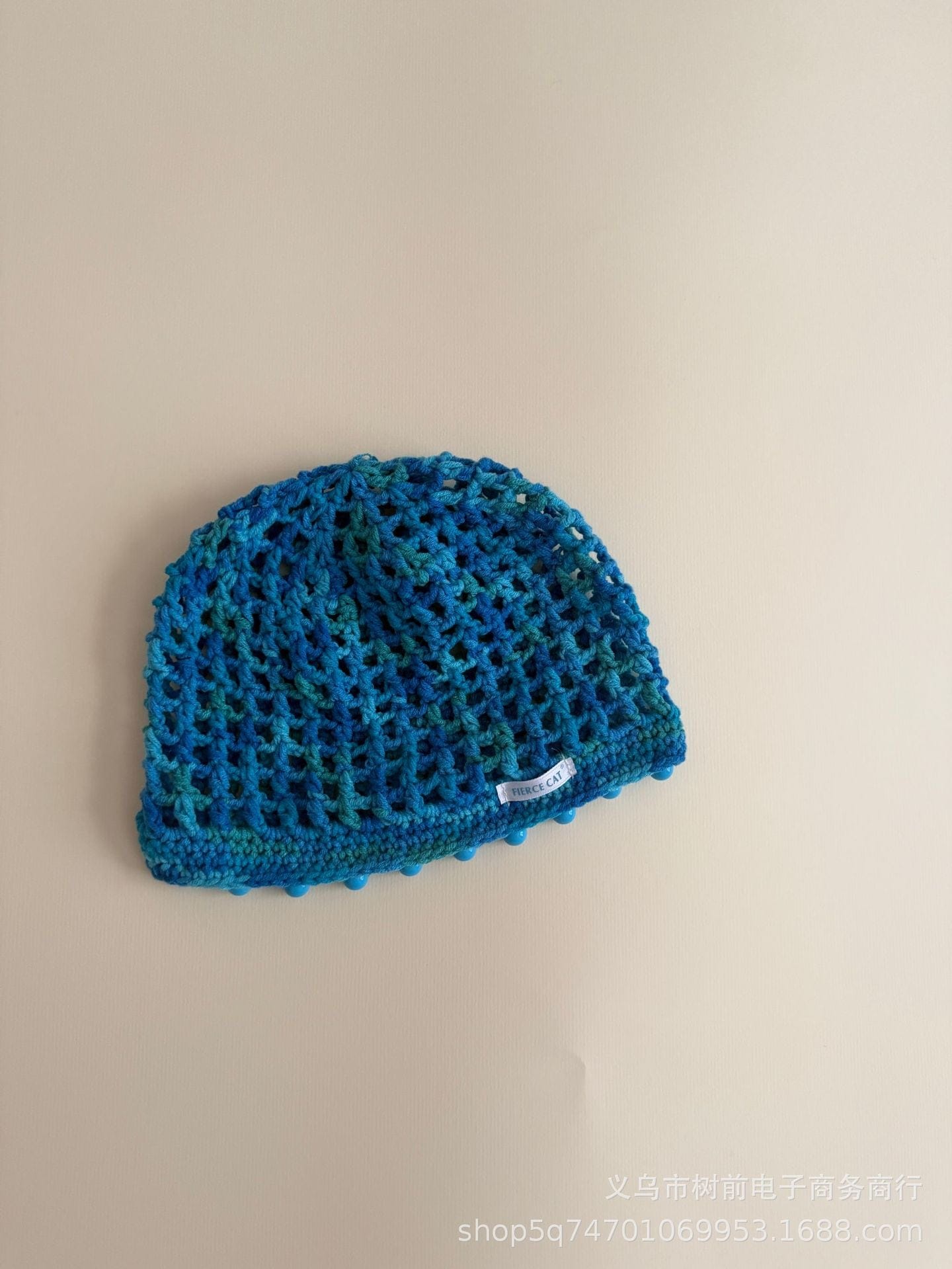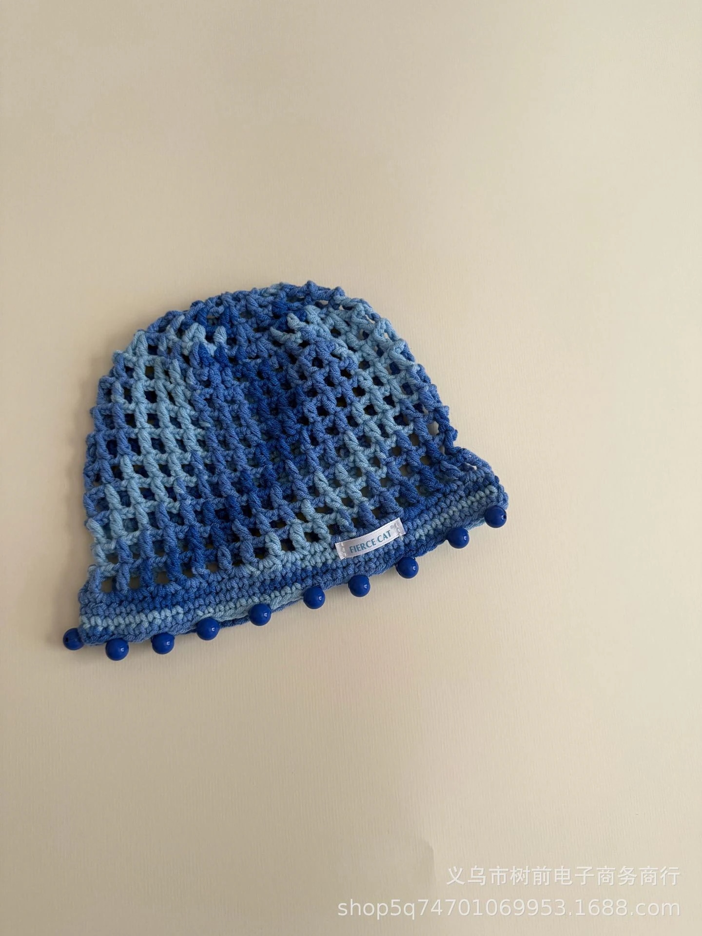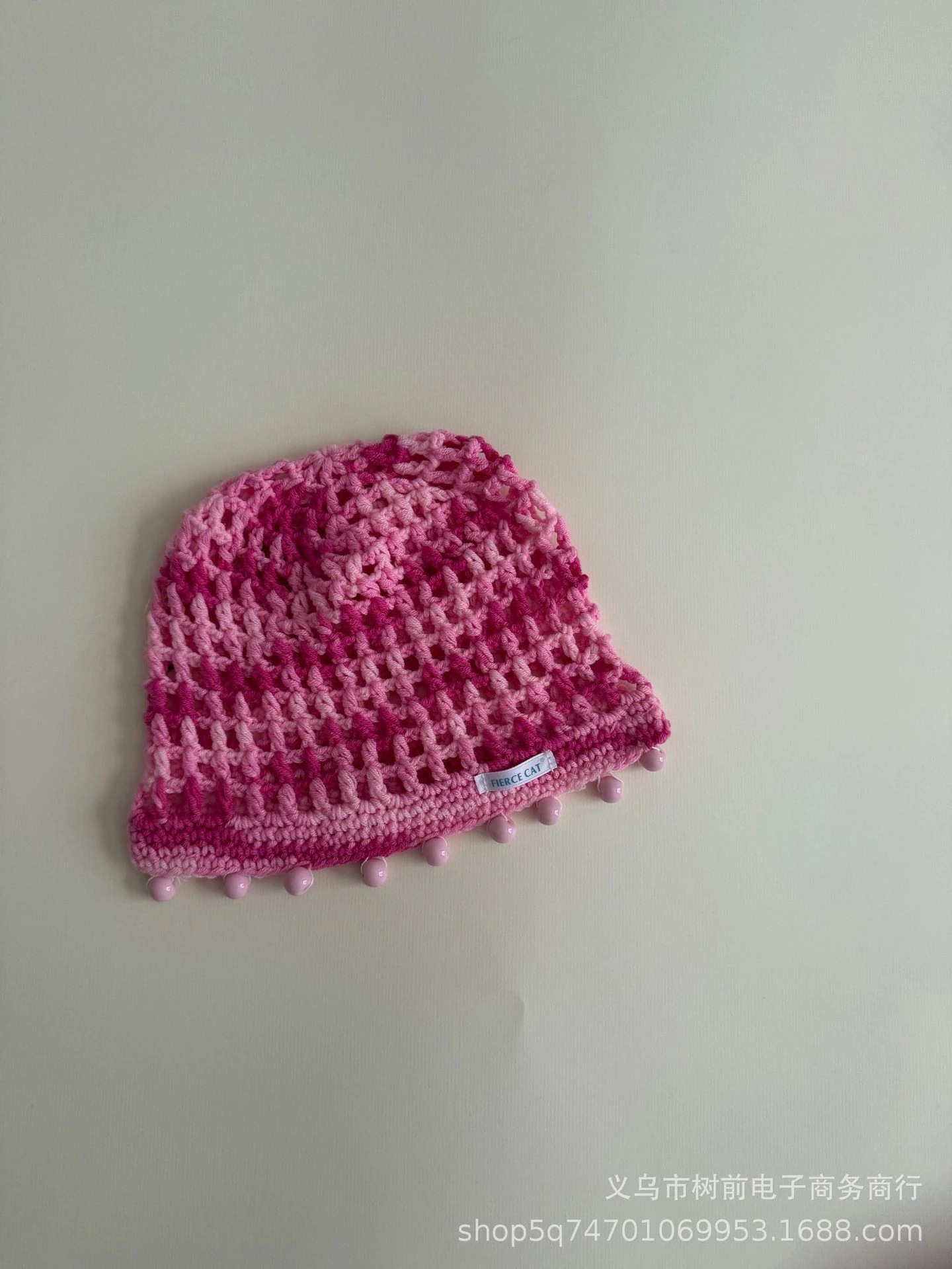 おしゃれな手編み透かし編み女の子ニット帽ビーズペンダント付き親子用ニット帽混紡コットン糸の森系ボンネット