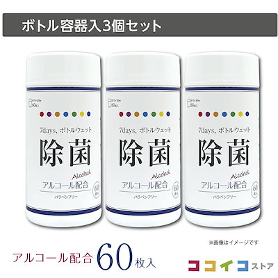 7days ボトルウェット アルコール 除菌シート 60枚入 (本体 3個セット)ウェットティッシュ 日本製 【まとめ買い】