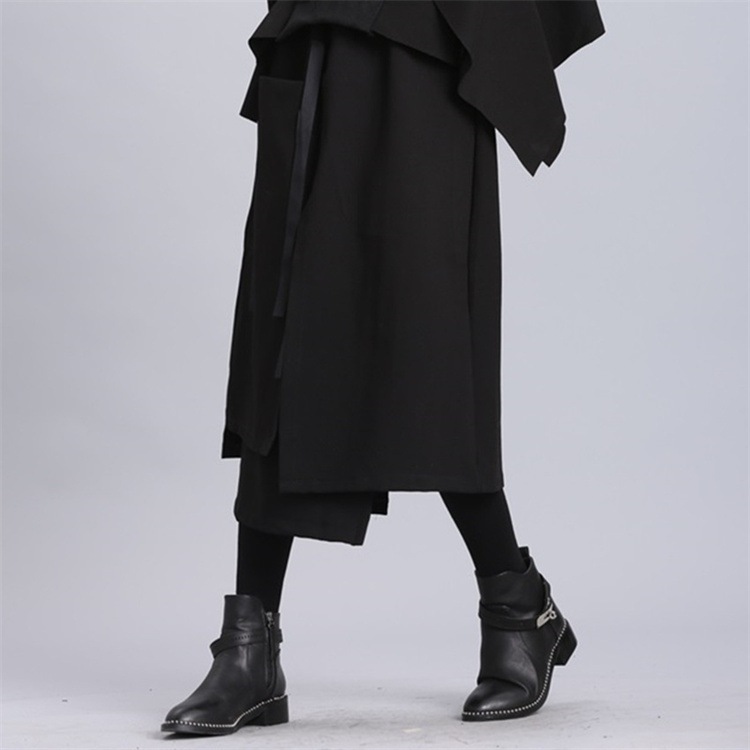 Twinkling starINSスタイル 2026新品 レディースブラックハイウエストハーフスカート ストリートサイドテープ ダブルレイヤープラスサイズ不規則ミッドレングス