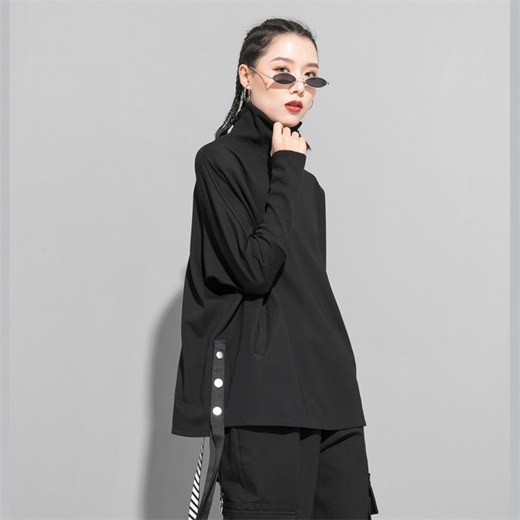 Twinkling star早い者勝ち レディースハイネックロングスリーブT恤 ダークスタイル不規則 個性的ルーズスリム万能 2026新デザイン