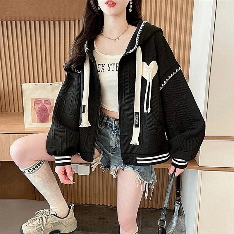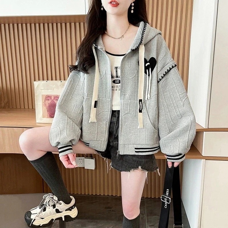 パーカー レディース ジップアップ 韓国スタイルのジャックサーズスウェットシャツ女性のためのとのフード付きルーズ学生カジュアルのためのカーディガンジャケットtops