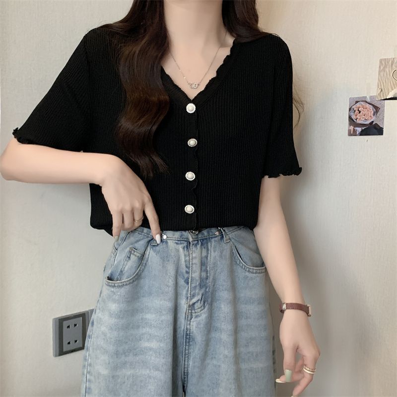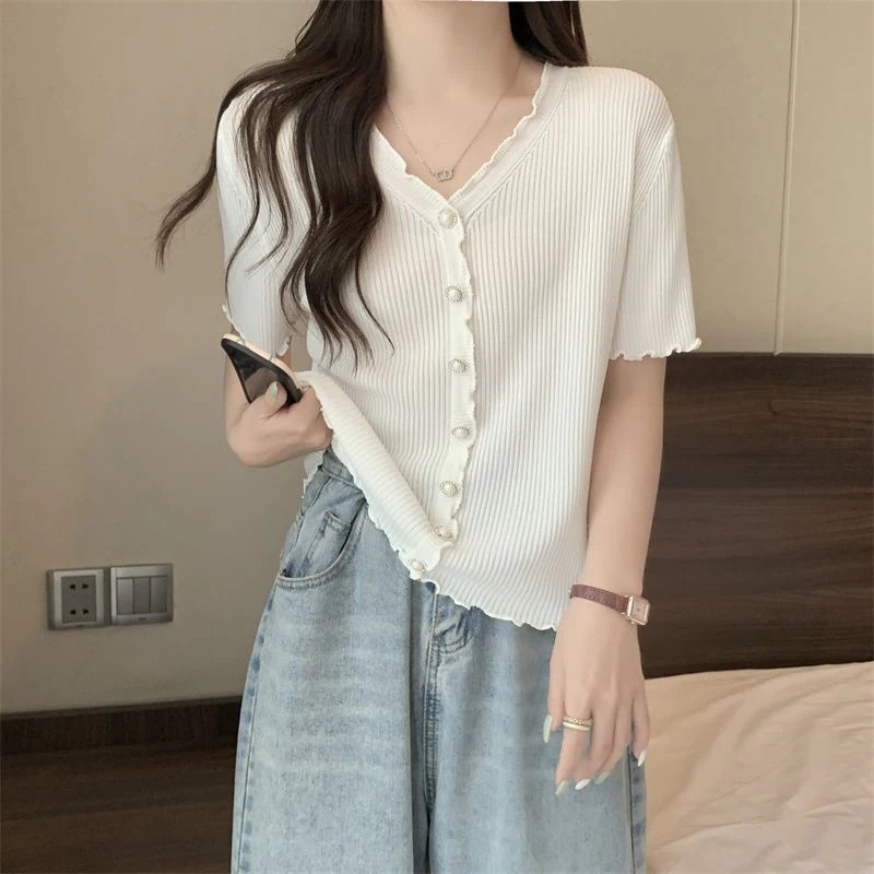 おしゃれなVネックTシャツ 夏の新作半袖Tシャツ お腹をカバーしてスリムに見えるトップス 女性用