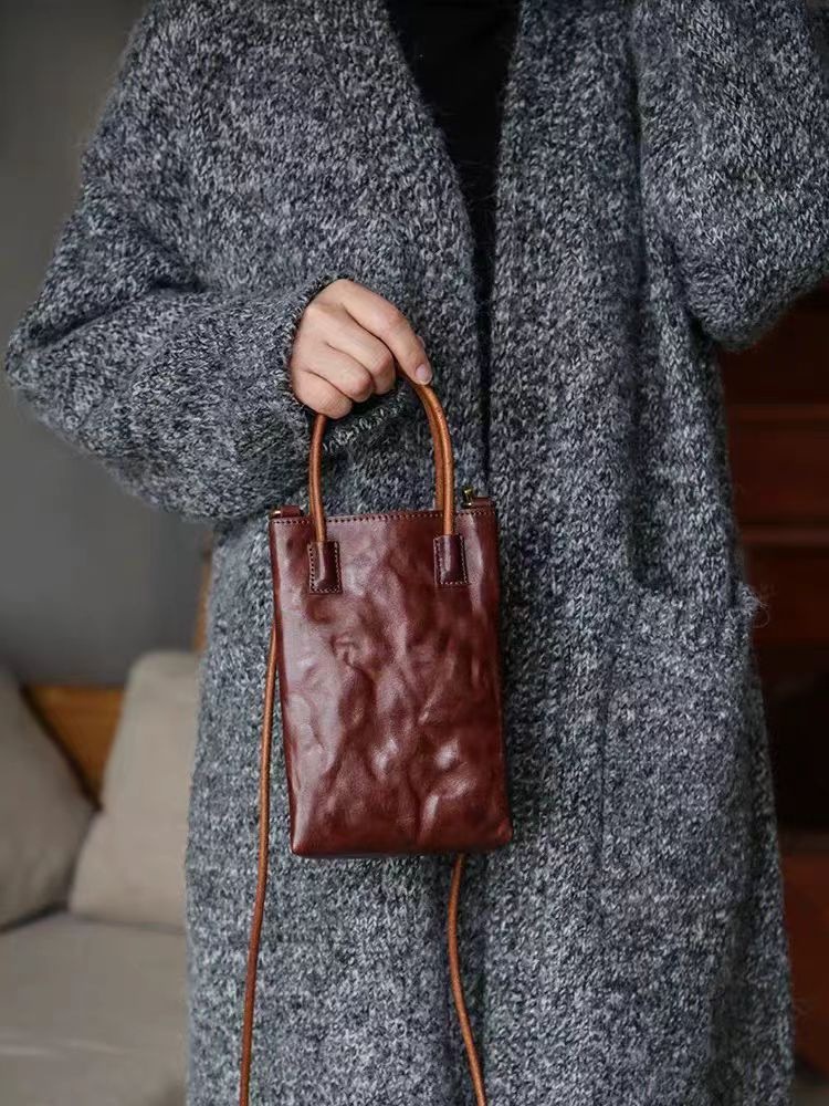 激安セール 高見え レトロ頭層軟皮 ミニトートスマホバッグ レディース 2色選択可 2026新作 手提げショルダー