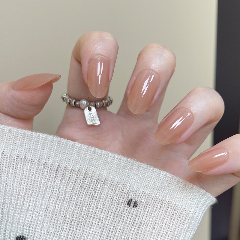 高級感のある夏向けヌードカラーグラデーションの手作りネイルチップ取り外し可能なショートアーモンド型つけ爪