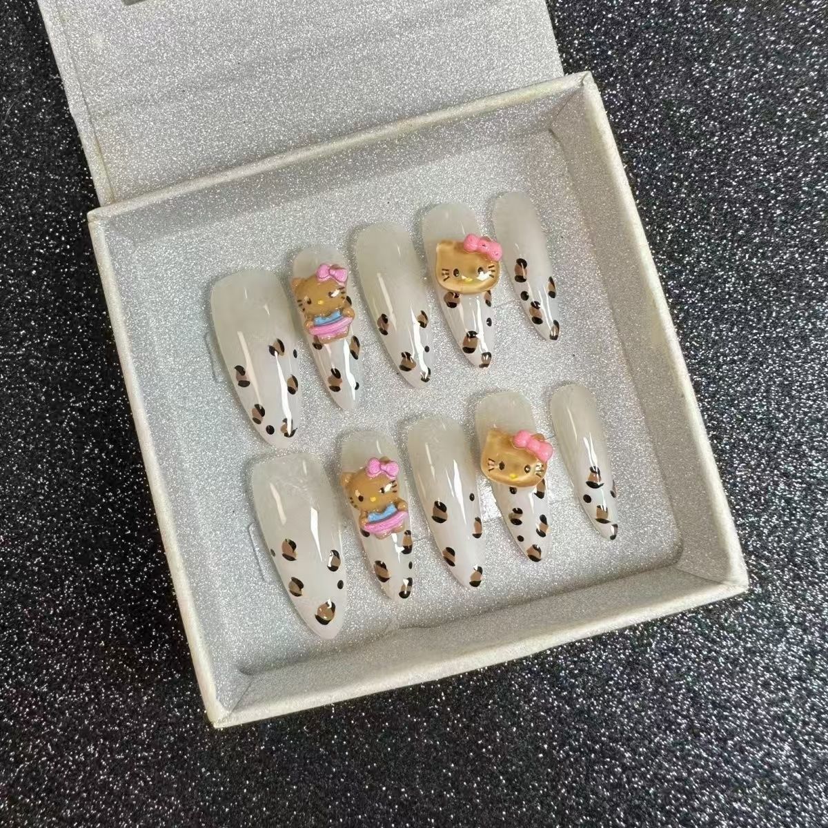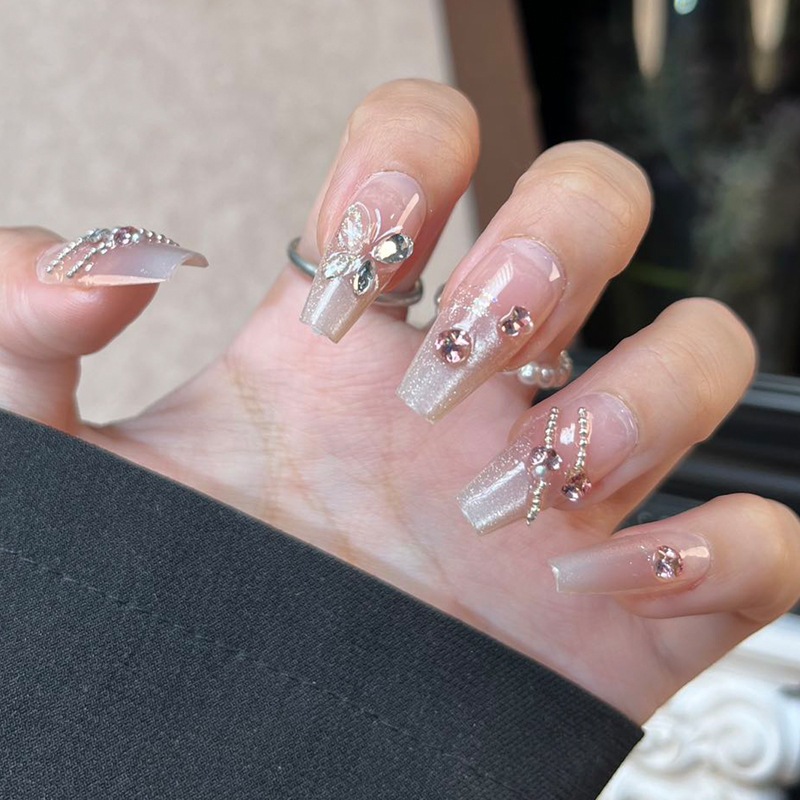 小紅書で話題の高級感のあるキャットアイラインストーンネイルチップ長くて軽い高級感と純粋な魅力のあるウェアラブルネイルチップ