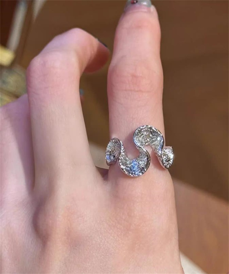 INSスタイル 2026 新作 エレガントウェーブ S925 オープン幅広リング 人差し指 おしゃれ