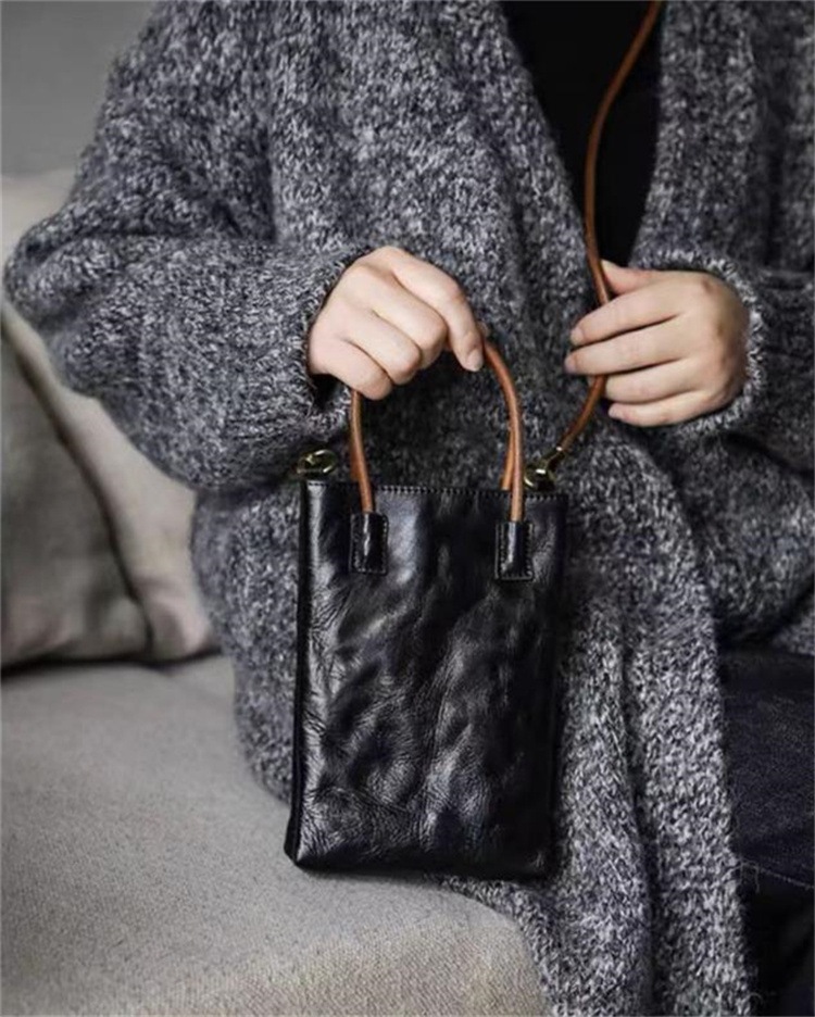 早い者勝ち レディースアクセ 2026新作 ミニトートスマホバッグ レトロ頭層軟皮 手提げ・ショルダー 2色選択可