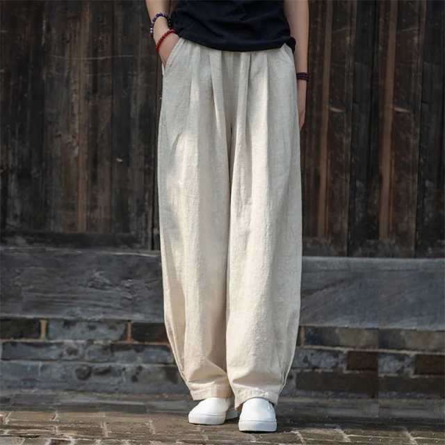 ワイドパンツ レディース パンツ ウエストゴム リネン 綿麻 薄手 チノパン ズボン ロング ボトムス ゆったり イージーパンツ