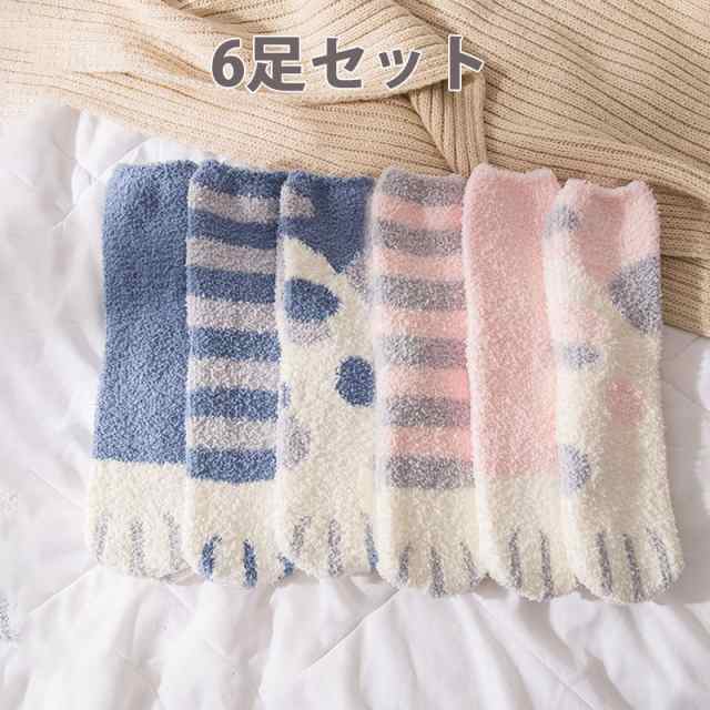 靴下 6足セット レディース クルーソックス くつした おしゃれ かわいい ショート ソックス 厚手 冬 暖かい あったか ルームソックス 秋冬 モコモコ